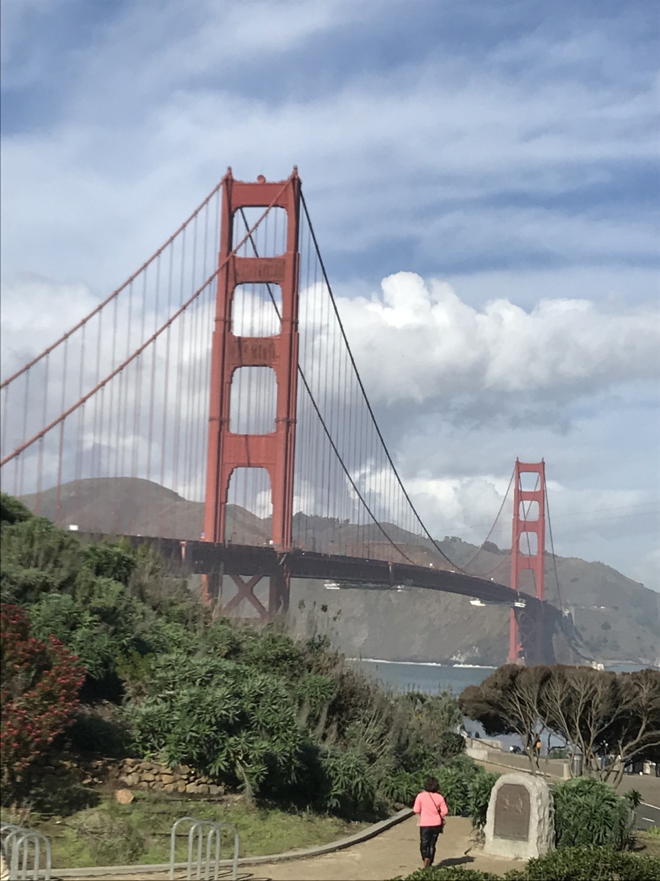 とりあえず、サンフランシスコの定番観光地のゴールデンゲートブリッジへウーバーを利用していきました。車は超渋滞と聞いてましたが、私が行ったときには空いていたので、橋を車で渡ってもよかったかな・・感想は、今や日本にも同じような橋がたくさんあるため、特に感動はなく、行ったということだけでした。橋は徒歩でも渡れますが、道路の横に低いコンクリのガードレールらしきものがあるだけなので、ちょっと怖いです。