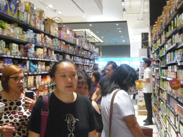一見して観光客とわかるグループが、チョコレートの前で、話し合っているのを見ると、お土産の準備に来ているものと判断されます。
