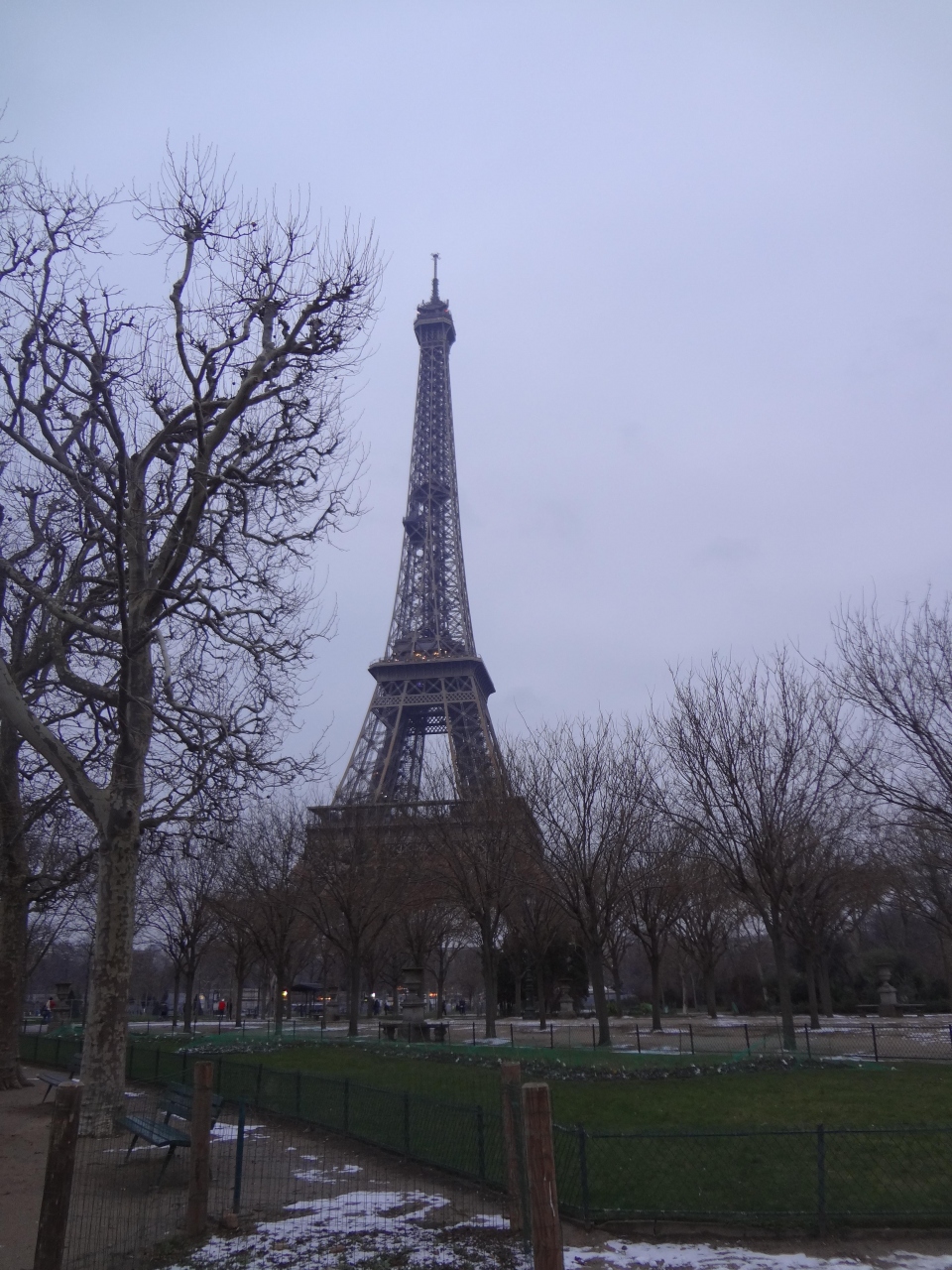 夕刻にパリに到着、入場は翌日の自由時間にと思っていたのですが、夜に雪が降ってホテルから10分弱で行けるところ、滑って歩く事が難しかったので入場は諦めました。夜のシャンパンフラッシュを見る事ができたのは幸いでした。