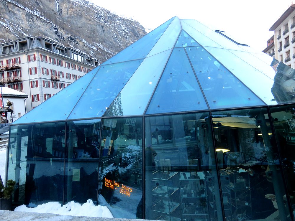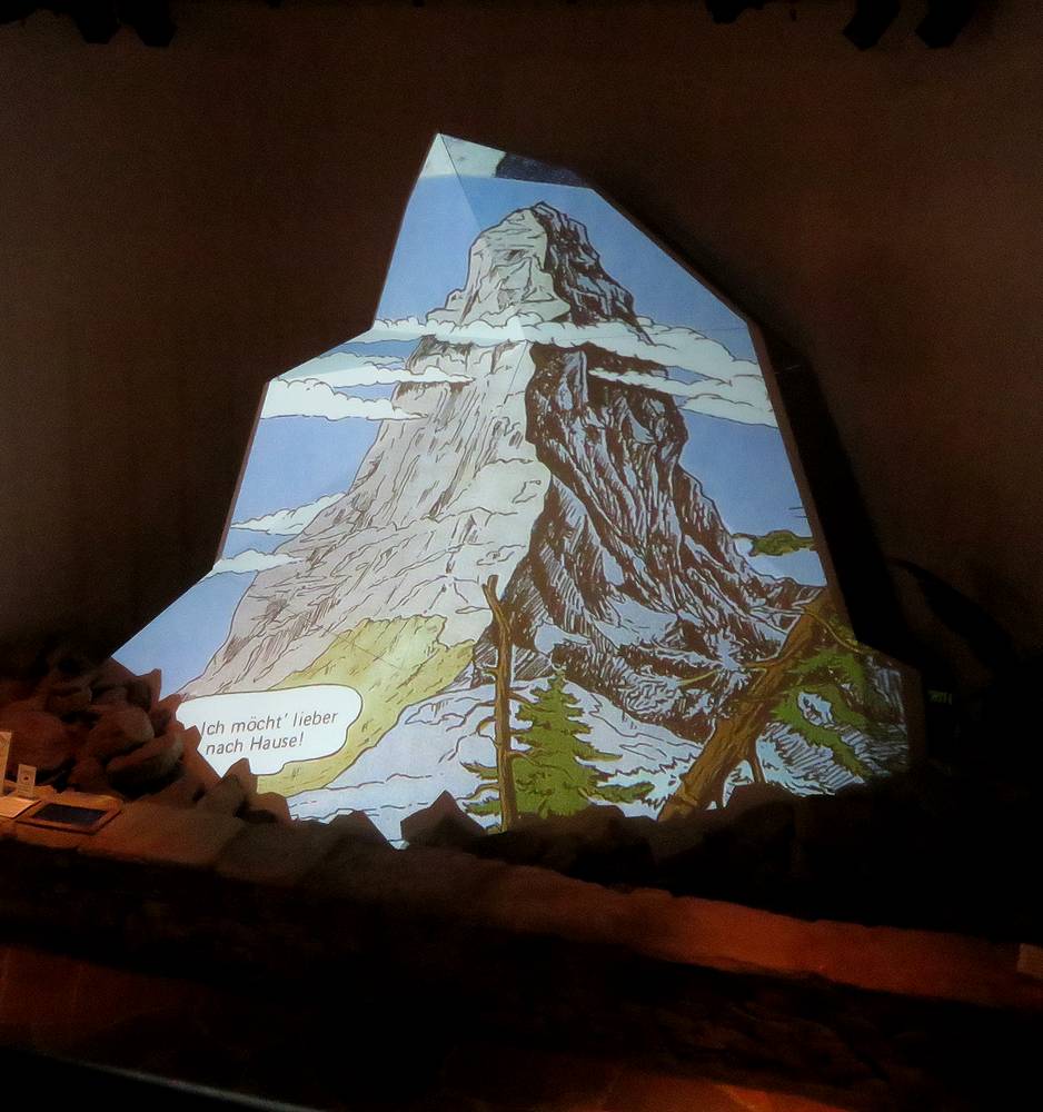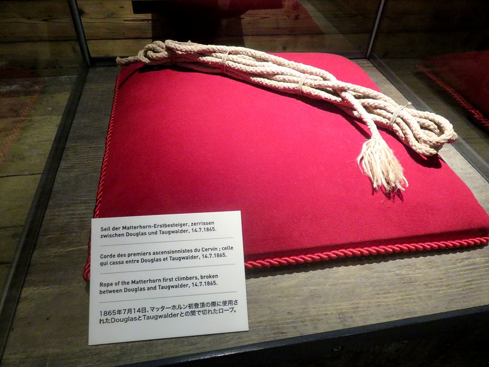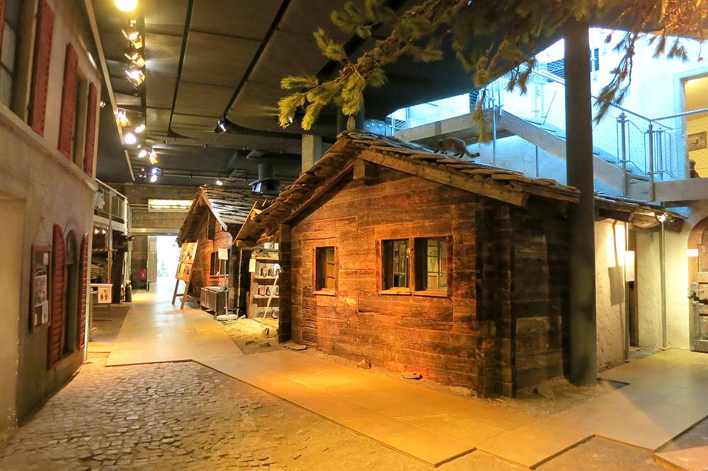 今年スキーを楽しんだ後、天候が悪い日に訪れました。駅から10分ほど歩くと、キルヒ広場横に青い屋根でガラス張りの小さな建物がたっていました。私達は15時からのオープンを知らずに午前中に行ってしまったので、15時過ぎに出直していきました。この博物館は以前の山岳博物館が移転新築されたものだそうです。入り口でチケットを購入(一般は10スイスフラン。シニアは8スイスフラン)。スイスパス保持者は無料だときいていたので、だめもとでハーフカードは?と聞いてみたが、割引はないとの返事。階段を下りると地下内部は想像以上に広く、民家も移築されていました。時間があったので、VTRを2本じっくり見ることができました。うちの一本はマッターホルンにイタリア側からとスイス側から初登頂に挑んだ男たちの映画でした。当時の装備で果敢に挑んだ姿や下山のときの悲劇が忠実に描かれ、興味深い内容でした。さらに面白かったのは、映し出されるスクリーンが折り紙のように開いて、マッターホルンの形になり、マッターホルンを映し出し易いように考えられていたことです。また、初登頂のときなくなった3名の遺品などの展示品も見逃せません。ぜひ時間があったら、訪れてはいかがでしょうか?
