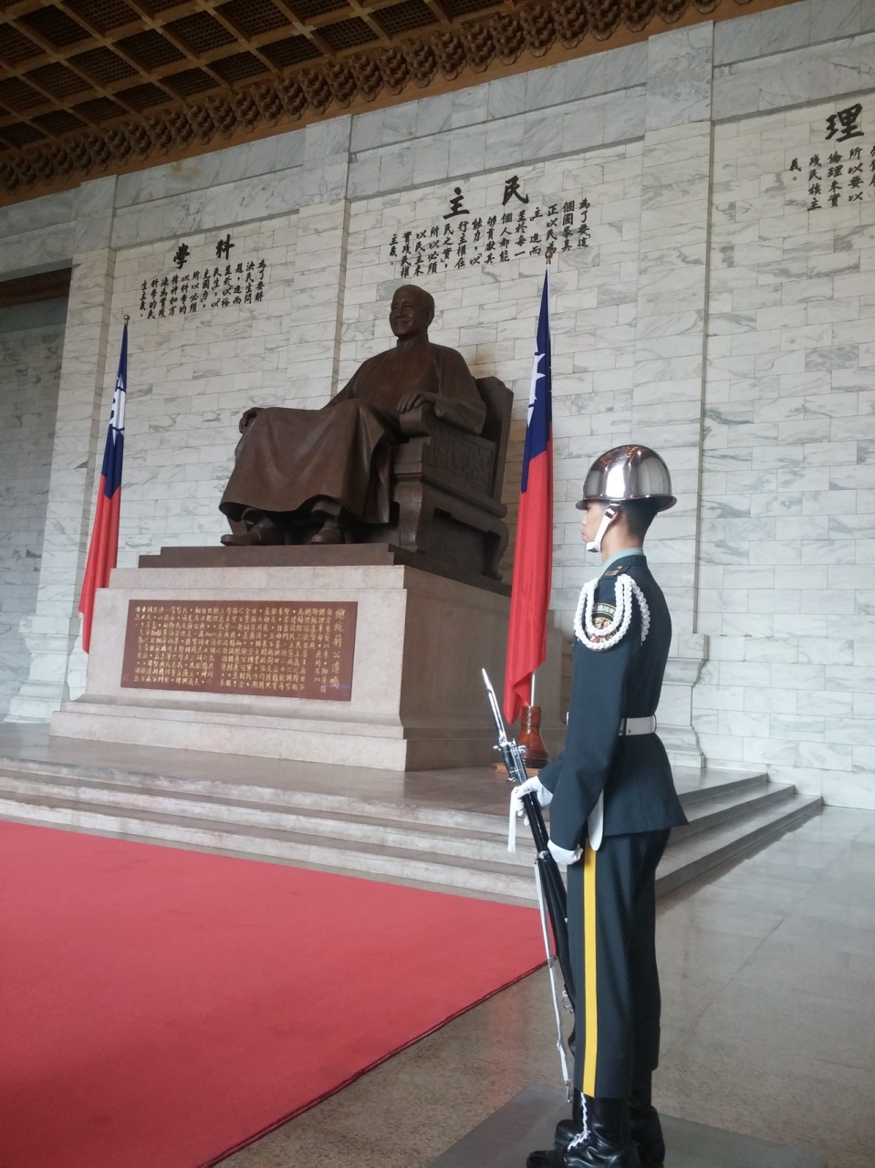 台北駅からMRTでひとつめの駅を降りると広場裏手にでます。広大な広場の先に記念堂が聳え階段を登れば蒋介石の巨大な像。両脇には衛兵が立っています。毎正時には衛兵の交替が行われ一子乱れぬ姿は必見です。記念堂からの眺めも素晴らしい!ゆっくり台湾の歴史を紐解くのもよいかも?
