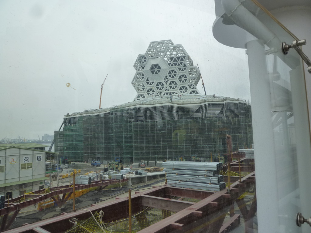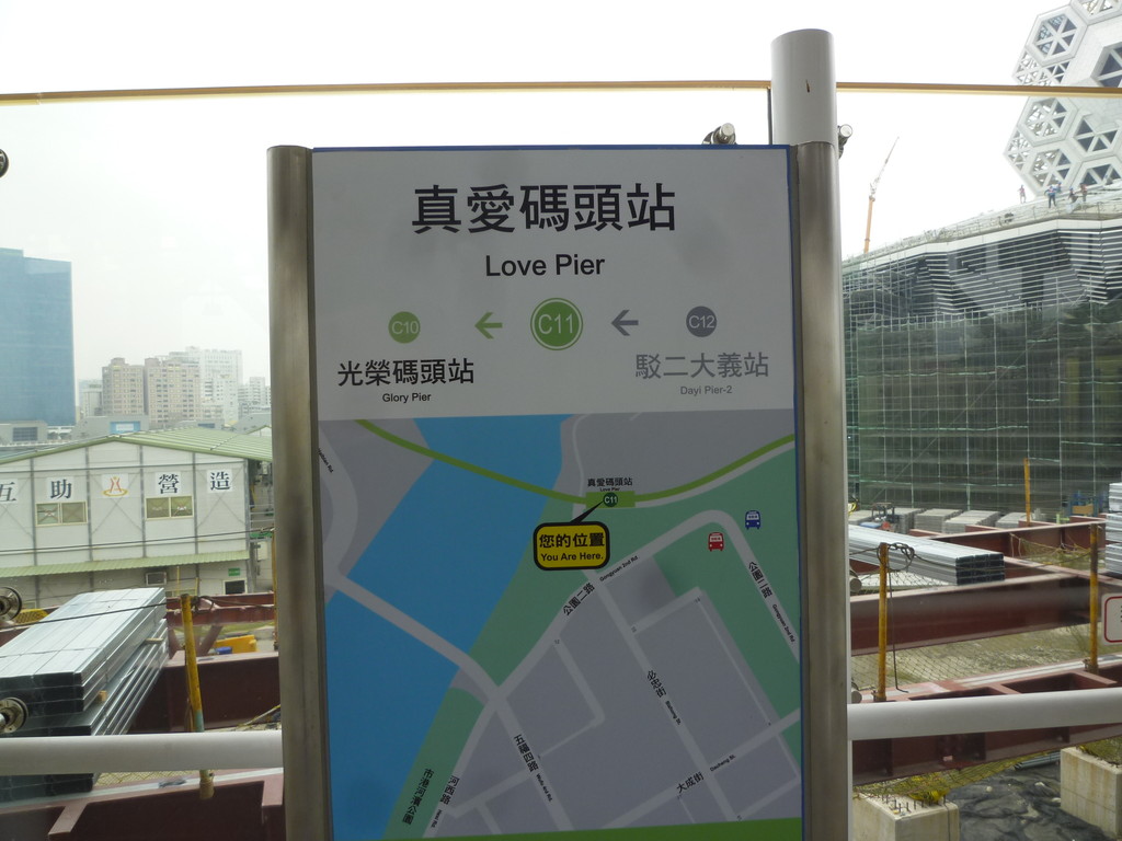 真愛碼頭駅は、白い階段を上がり高台にあり、 工事中の真愛碼頭がよく見えました。
