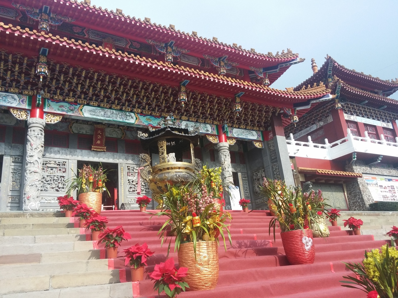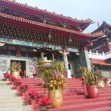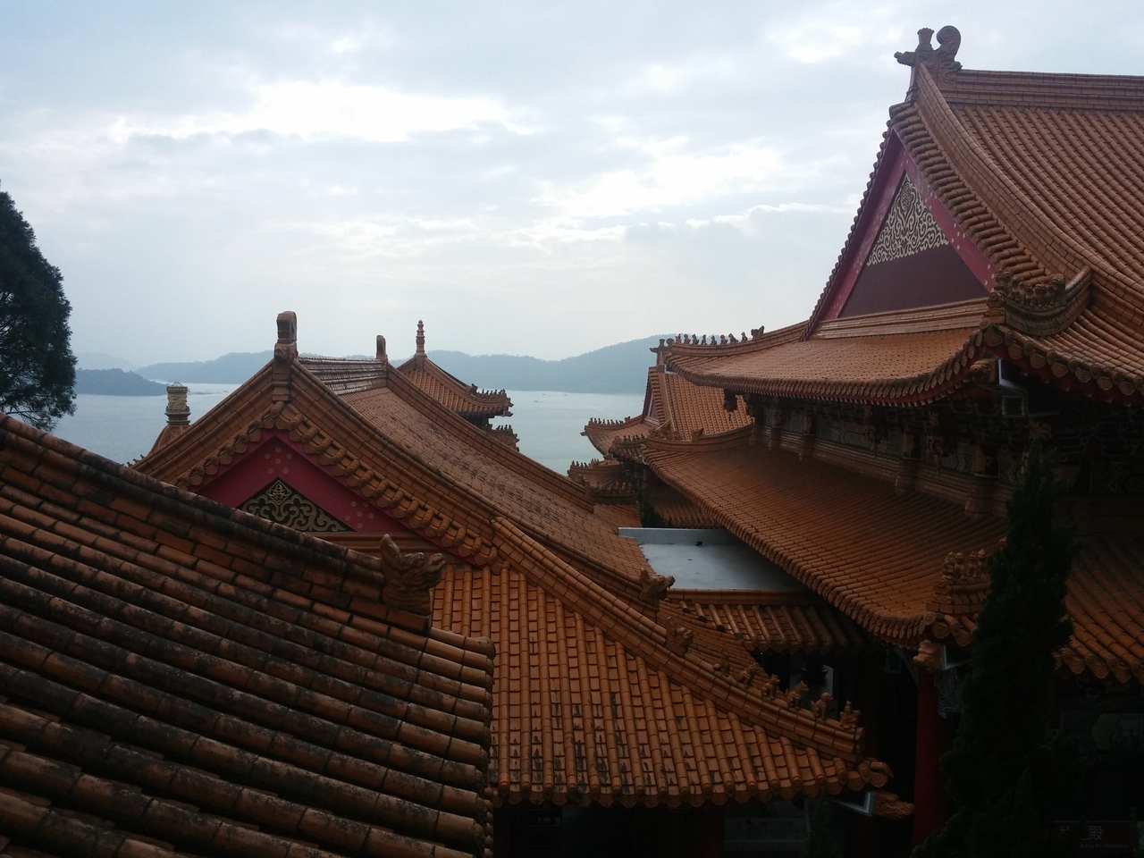 日月単の湖畔に面して建つ文武廟。山の斜面を活かした造りで、斜面を上り奥に進むにつれ、その大きさを実感出来るように作られています。極彩飾に彩られた本殿から上に登ると質素な石造りに墓碑が彫られていてそのコントラストも面白い。上からの湖の眺めは素晴らしい。入口正面に左右対称に祭られている獅子像も必見です。