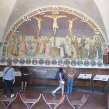 回廊周りは少しだけの見学でしたので見落とした部分もありましたが、アンジェリコが描いた「キリスト磔と聖ドメニコ会の方がたのフレスコ画」があります。