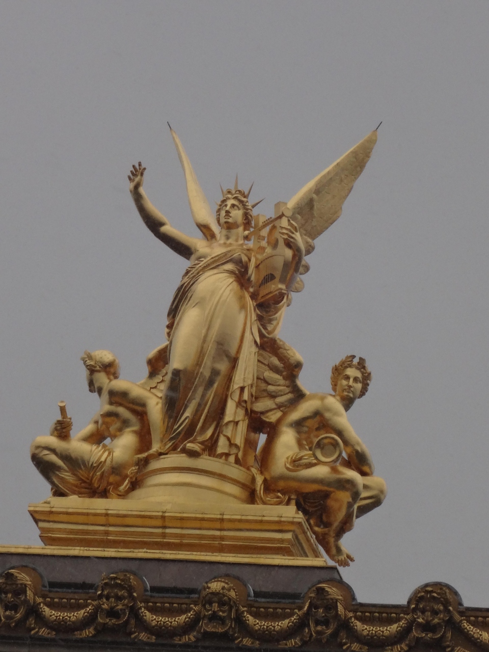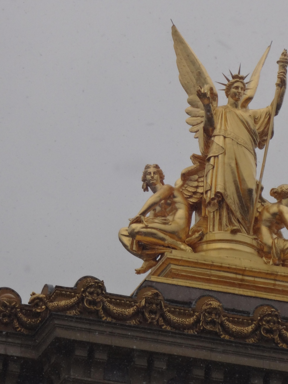 オペラ ガルニエを鑑賞するには、まず少し離れてオペラ通りから眺めることをおススメいたします。添乗員さんから説明を受けましたが、“オペラ座の眺望を楽しむのに邪魔にならないように”という皇帝の望み通り、木が1本たりとも植えられていない事に感心しました。徐々に建物に近づきオペラ座を前にすると、色彩豊かなファサードと華やかな飾りを確認することができます。時間の関係で建物の中に入館しなかったのが残念です。