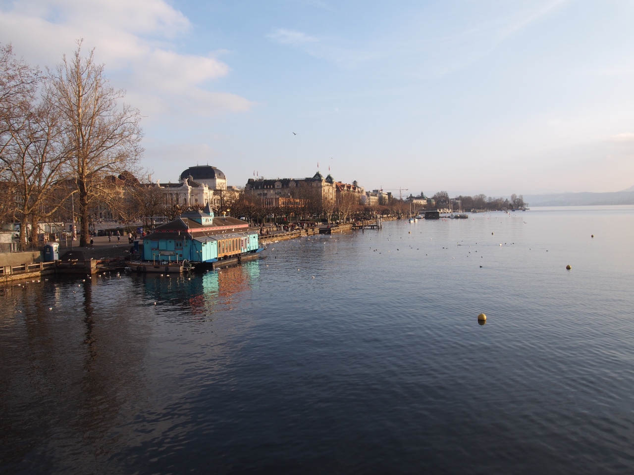 チューリッヒの街に接してある湖です。氷河湖のようでリマト川の注ぎ口にチューリッヒの街が出来ています。街の中心部からは歩いても行ける距離なので訪れる場所です。ただ今の時期は昼間でも気温が零度前後なので、湖畔でゆっくり過ごすのはつらいです。また湖畔には観光客などをほとんど見かけませんでした。