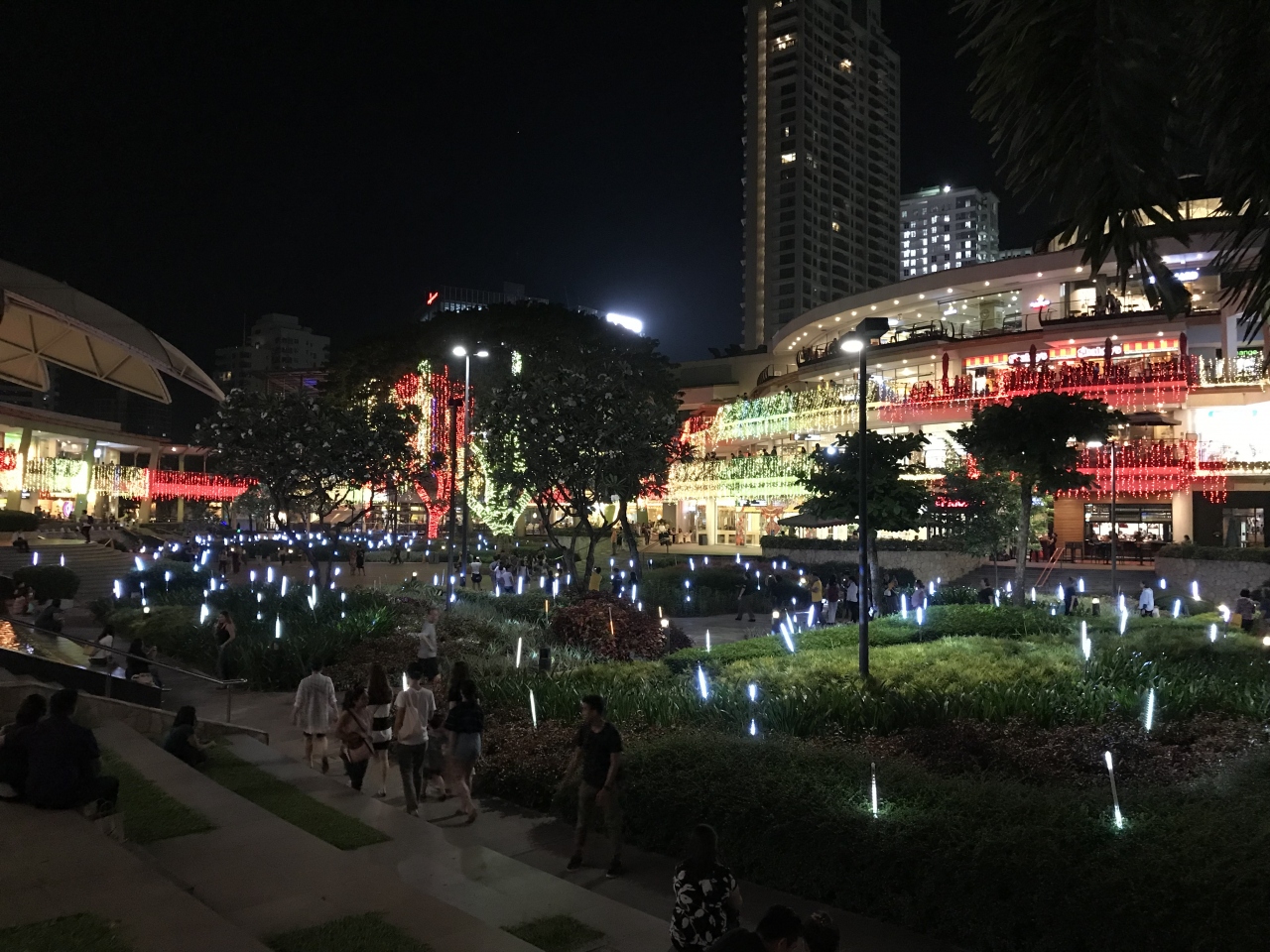 時期的なものなのか、中庭では大音量の音楽と、それにあわせたイルミネーションがやっていました。
