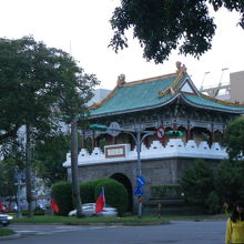 中正紀念堂を観光後、徒歩で台北植物園を訪れました。その途中で見つけた門です。東門と同様、こちらもけっこう交通量が多い道路の中にあり、周りはロータリーのようになっていました。中華風のデザインや色使いがきれいでした。