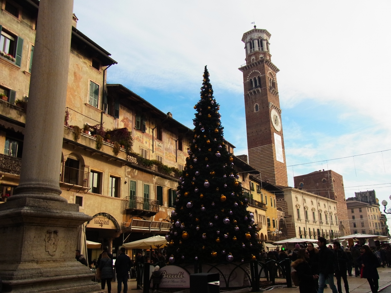 ヴェローナの旧市街中心部にある広場です。午前に通った時には人通りはそれほど多くありませんでしたが、午後には賑やかになっていました。