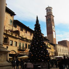 広場に面して、ヴェローナで最も高いというランベルティの塔があります。