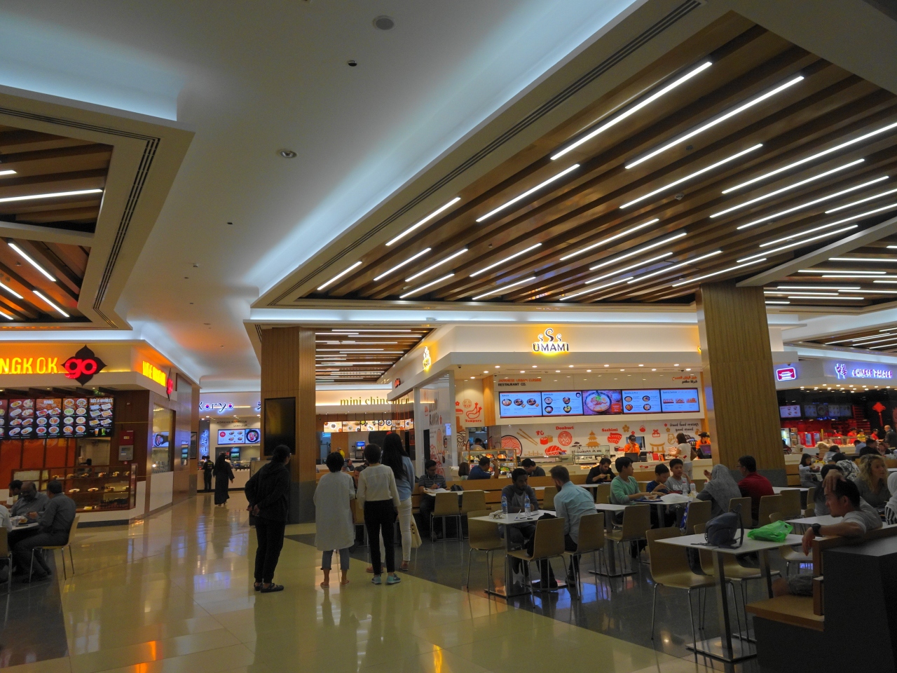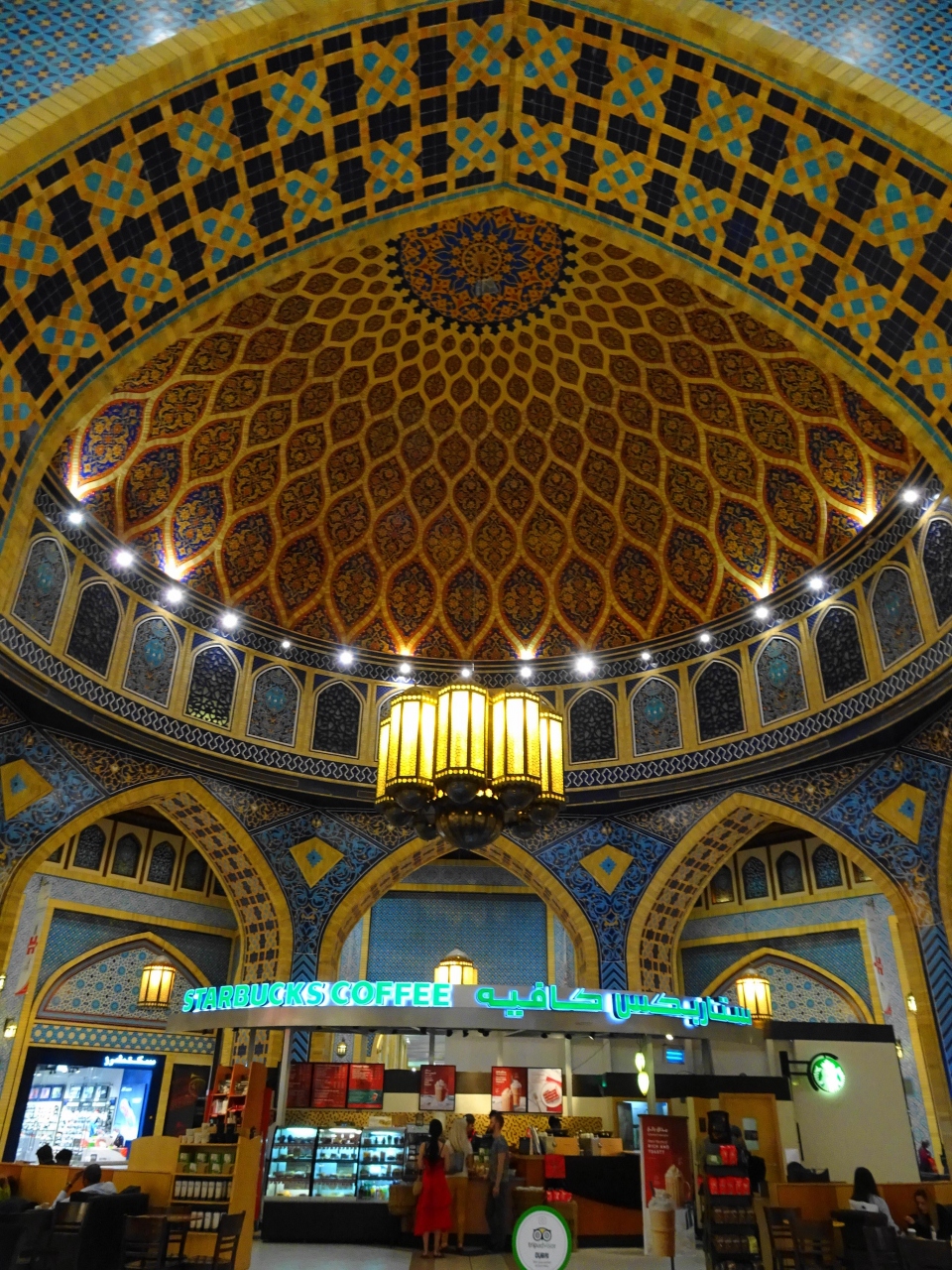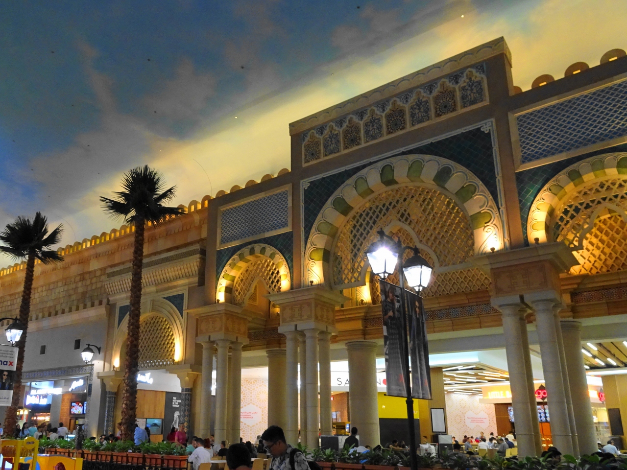 アブダビ行のバスに乗るため寄りました。バージュハリファ駅から行くと2018年12月現在DAMAC駅からイブンバットゥータ駅まで無料の代替バスに乗り換えます(20分)。DAMA駅で下車し皆の流れに乗ってバスの表示を目指して進みます。イブンバットゥータ駅前のバス停に到着すると向かいにモールがあるのでそのまま真っ直ぐ行き中に入ります。そこはペルシャコート(PERSIA COURT)エリアになりHOME BOXというニトリみたいな店の中を通りそのまま直進すると世界一美しいスタバがあります。このペルシャコートが一直線に並んでいる6つのエリアの真ん中にあたり右側のエジプトコート(EGYPT)→チュニジアコート(TUNISIA)に進むと大きなフードコートがあります。中華弁当を食べましたが1000円以下で美味しいです。