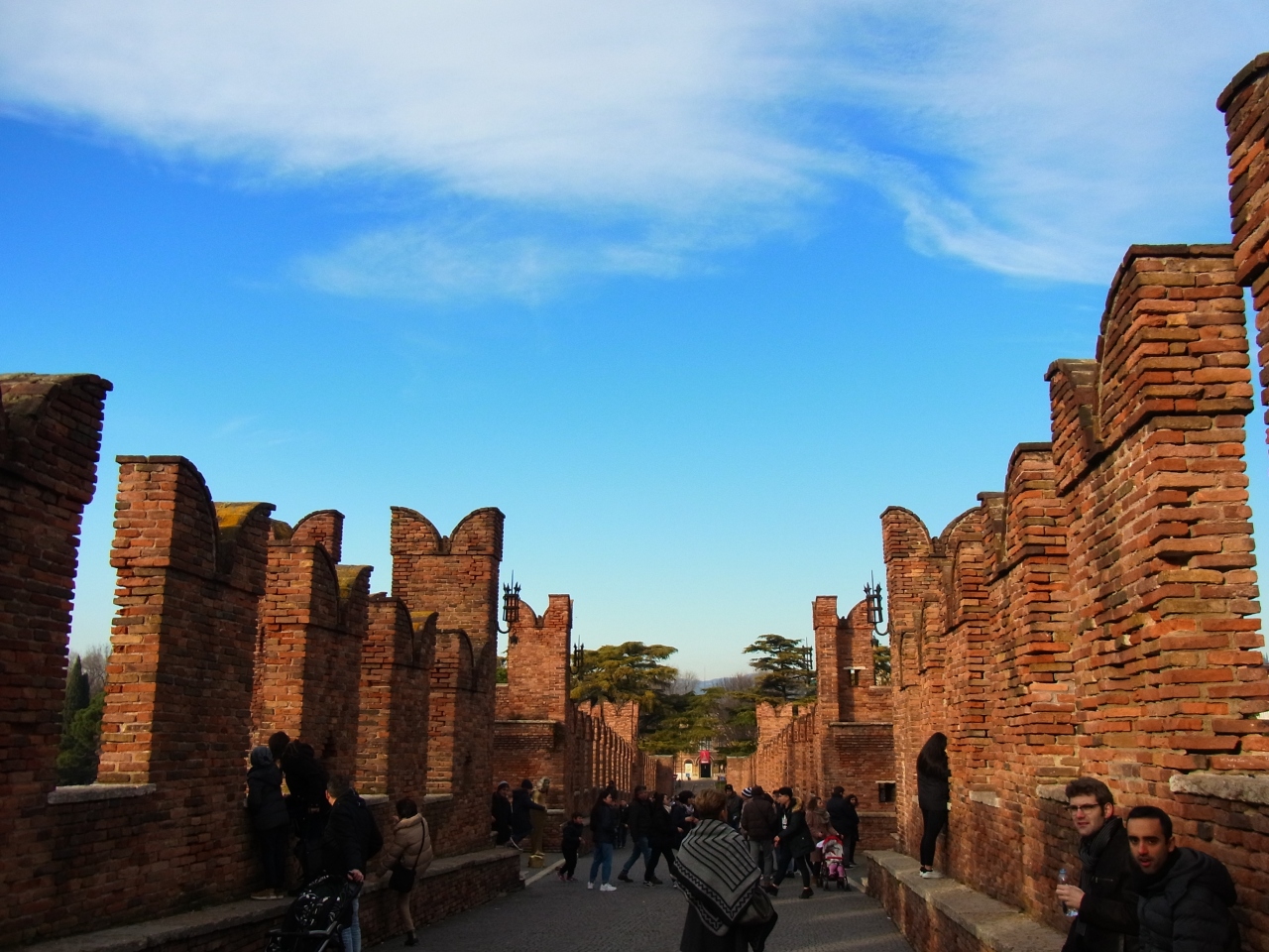 現在は美術館となっているカステルヴェッキオという建物があり、そこから繋がっているのがスカリジェロ橋です。スカリジェロ橋は、レンガを積んで作られている立派な造りで、見応えがあります。有名な橋なので、観光客も沢山いました。橋から眺めるアディジェ川の景色も綺麗です。