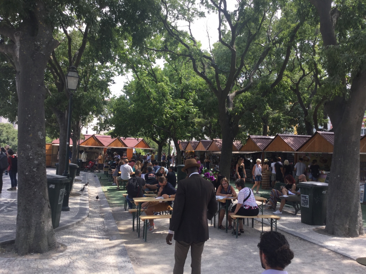 ドン ペードロ5世通りはサン・ペドロ・デ・アルカンタラ展望台付近から北西のプリンシペ・レアル広場まで延びる通りである。道路は緩やかな上り坂で比較的広く両方向通行で多くの自動車が行き来し歩行者も歩いていた。通り沿いには市内を一望できるサン・ペドロ・デ・アルカンタラ展望台、木々が多いリンシペ・レアル広場、アズレージョのショップ、ソラール、魚介料理のレストラン、ア・セビチェリア等があり散策や買物、食事を楽しめる。ロシオ駅周辺からはケーブルカー(グロリア線)で行くのがいいかもしれない。