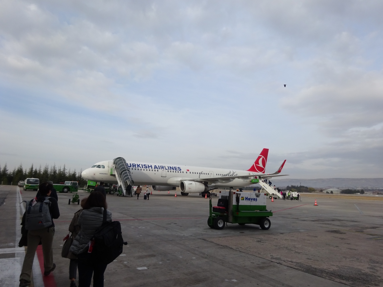 もともと空軍の空港だったため、小さかったけど、搭乗時のチェックは厳しくて、空港内の写真も禁止されていました。写真撮影を禁じられているにもかかわらず1枚写真を撮影したところすぐに注意されました。ゴメンナサイ。離陸時にトルコ空軍の施設と飛行機を見る事が出来ます。