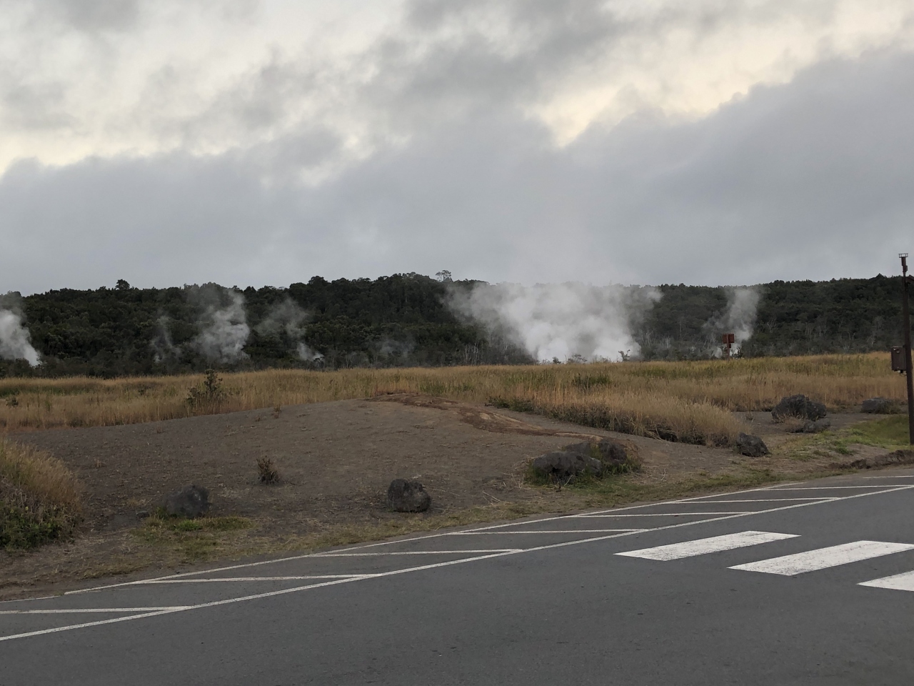 ビジターセンターから近いです。クレーターリムドライブ沿いにあります。キラウエア火山の溶岩で熱せられた地下水が