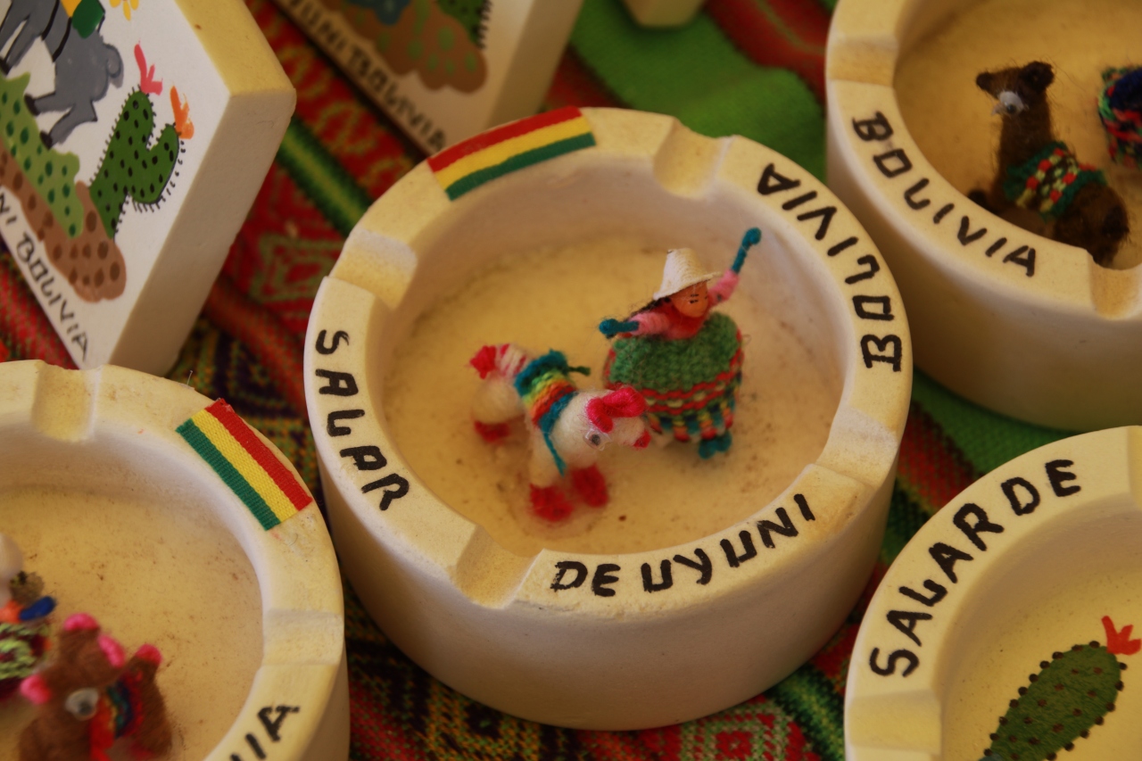 近くには塩の精製工場もあり、塩湖の塩を精製するところも見ることができます。お土産品はどこも同じようなものばかりですが、民族衣装などカラフルなものが多くあります。また、岩塩を削って作った置物なども売られています。