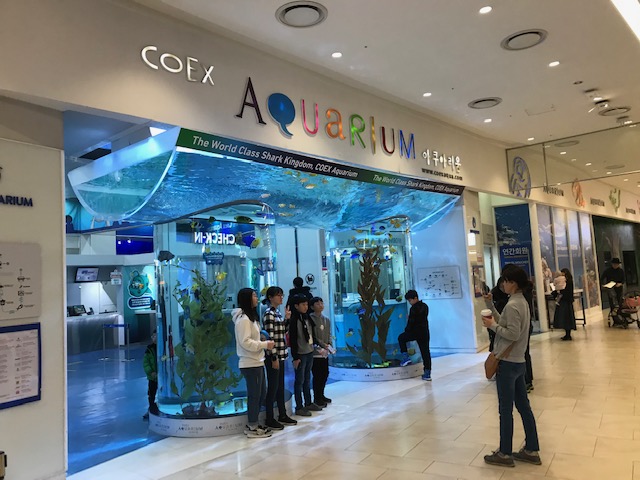 江南コエックスの中にある水族館です。入場料は28000ウオン(約2800円)と少し高いですが、日本でも水族館の入場料は高いのでこんなものでしょうか。予想よりも楽しめましたが、どちらかというと子供を楽しませる仕組みがたくさんあり、家族連れで賑わっていました。違う文化を感じました。