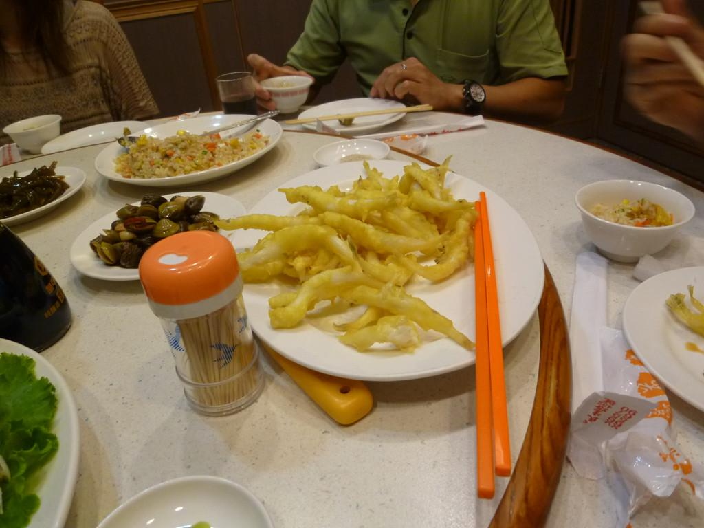ワカサギに似た魚の天婦羅、鳥料理、ビーフン、マテ貝など、どれも美味しかったです。