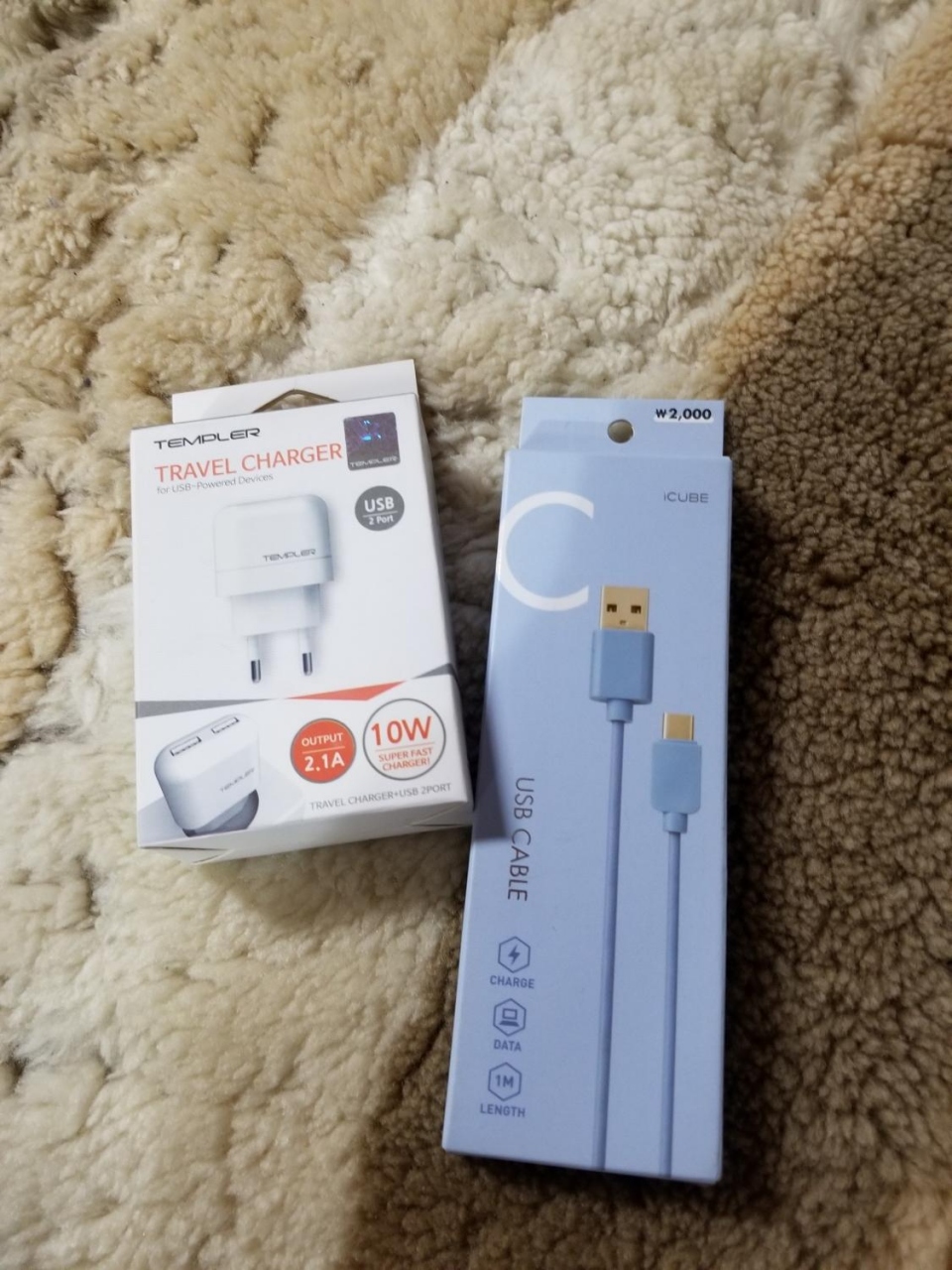 韓国用にUSBが2つさせるコンセント@6,900Wとケーブル@2,000Wを買いました。