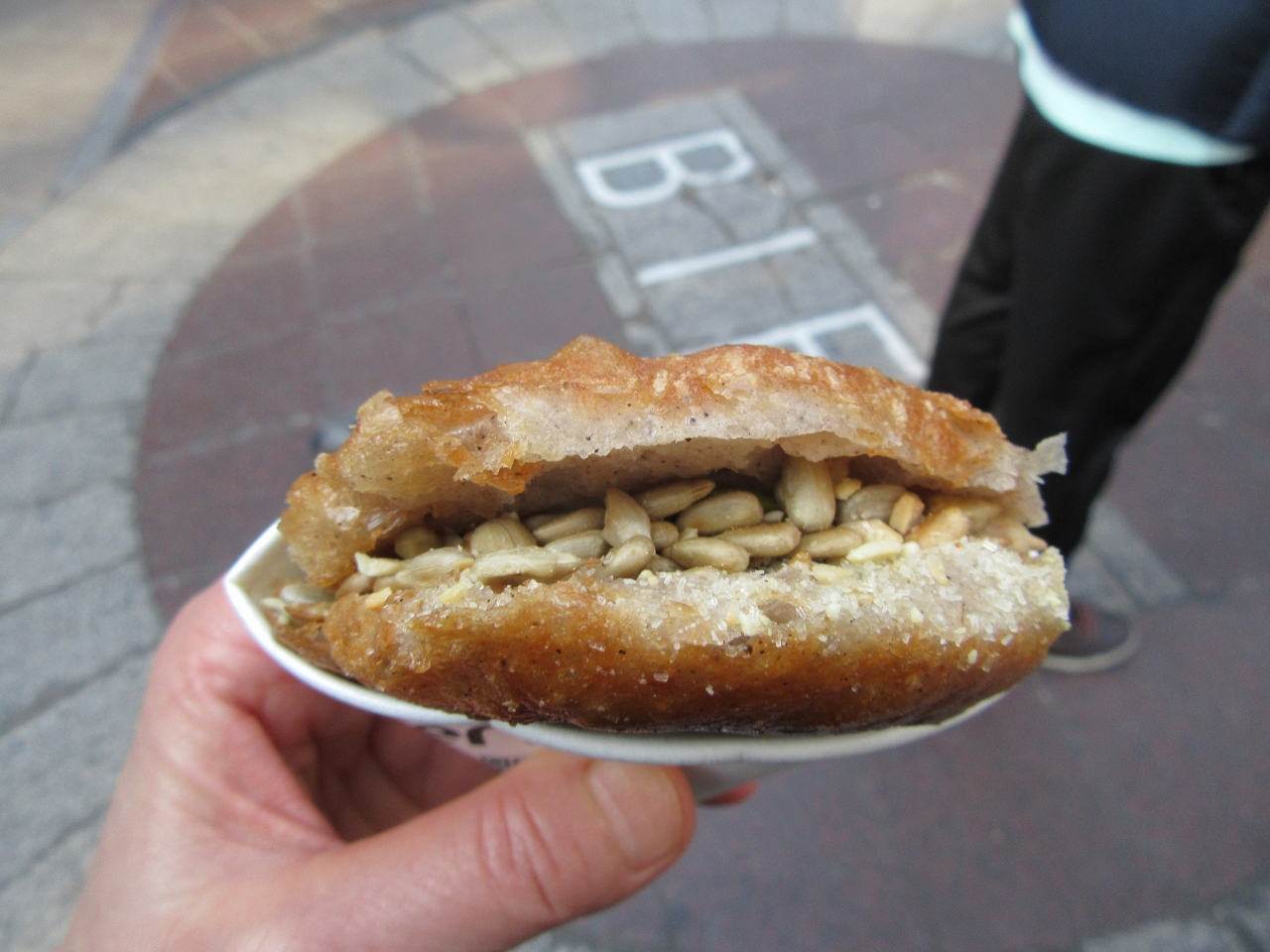 BIFF広場にはB級グルメが沢山ありますが、中でも「シアホットク」は絶品です。いつくつか行列のできているホットク屋さんがありますが、一番長い行列のできてるお店に並びました。一つ1300ウォン。油で揚げているにも関わらずくどくなく、甘さもちょうどいい。絶品のホットクでした。