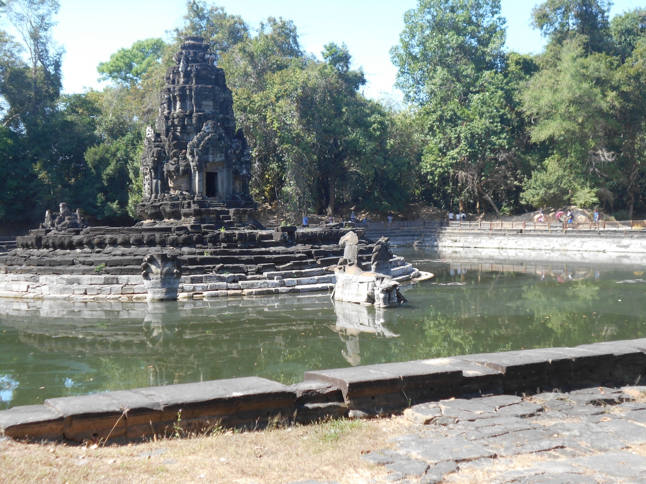 池を渡った先にある,ナーガが絡みあうモチーフで飾られた中央祠堂が有名な寺院。水辺にあるということで,欧米人にも大人気。乾季に行ったにも関わらず,祠堂周辺の中央池の水はまだ水位が十分だったが,完全に水が引いてから行くとナーガの姿がよく見えてよいと思う。