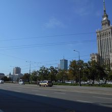横断している大通り「イェロゾリムスキェ通り」との交差点に宿泊したホテル「メトロポル」があったので、何度も通りましたが、「文化科学宮殿」の全景を撮影する際もこちらの通りからはすごくおすすめです。