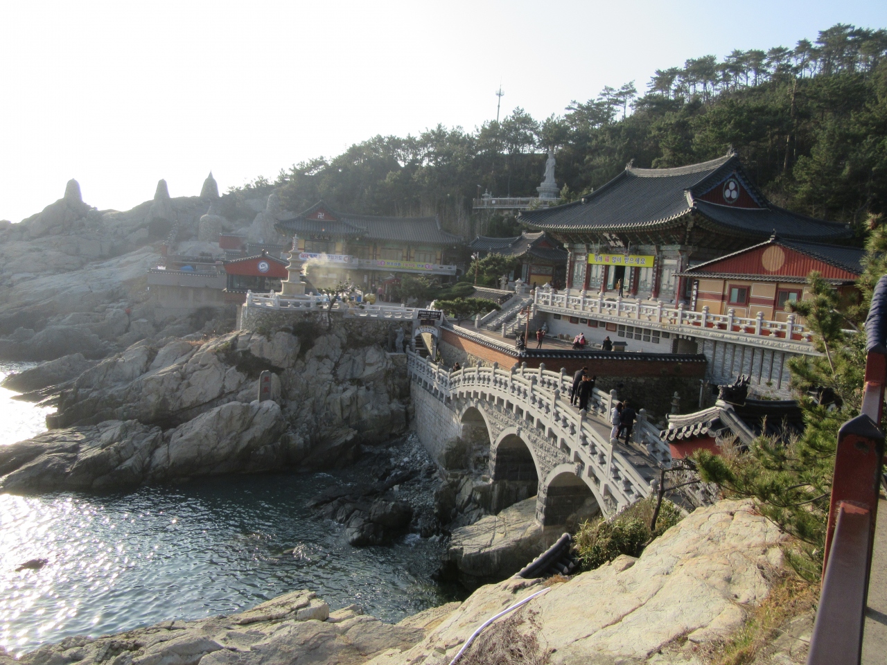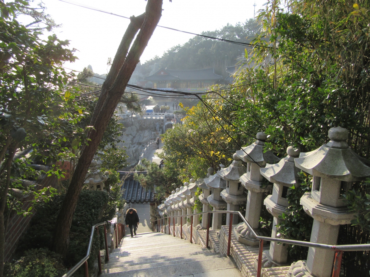 海雲台から龍宮寺まで行くにはバスが便利です。バス停からは徒歩10分から15分程。お寺までは緩い坂道が続きます。看板が所々に出ているので迷う事はないです。岸壁の直ぐ傍に建つ龍宮寺の景色は圧巻です。このお寺は、真剣に願い事を唱えると、一つだけ願い事を叶えてくれると言われていて人気のパワースポットにもなっているようです。本堂までは狭くて急な階段が続くので、歩き安い靴で行く事をお勧めします。
