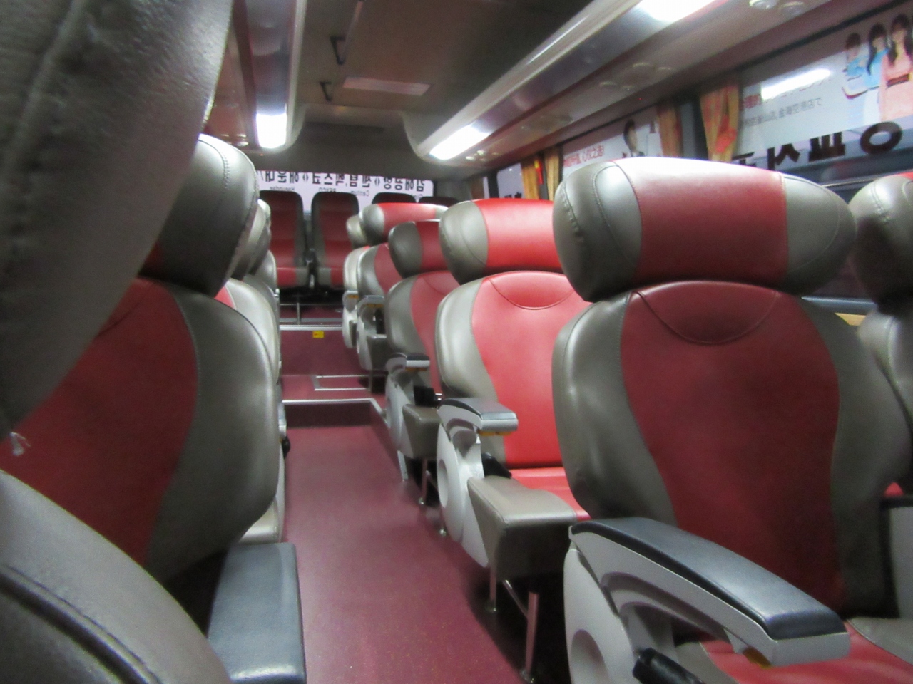空港から海雲台までの移動で利用しました。少し距離があり、途中渋滞に巻き込まれたりで1時間半ほどかかってしまいました。車内は広々していて快適です。荷物置き場も車内にもあるし、大きなスーツケースなどはバスの横っ腹に入れる事ができます。