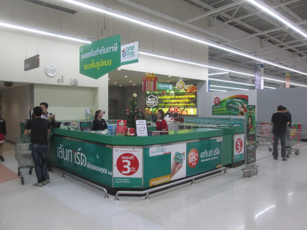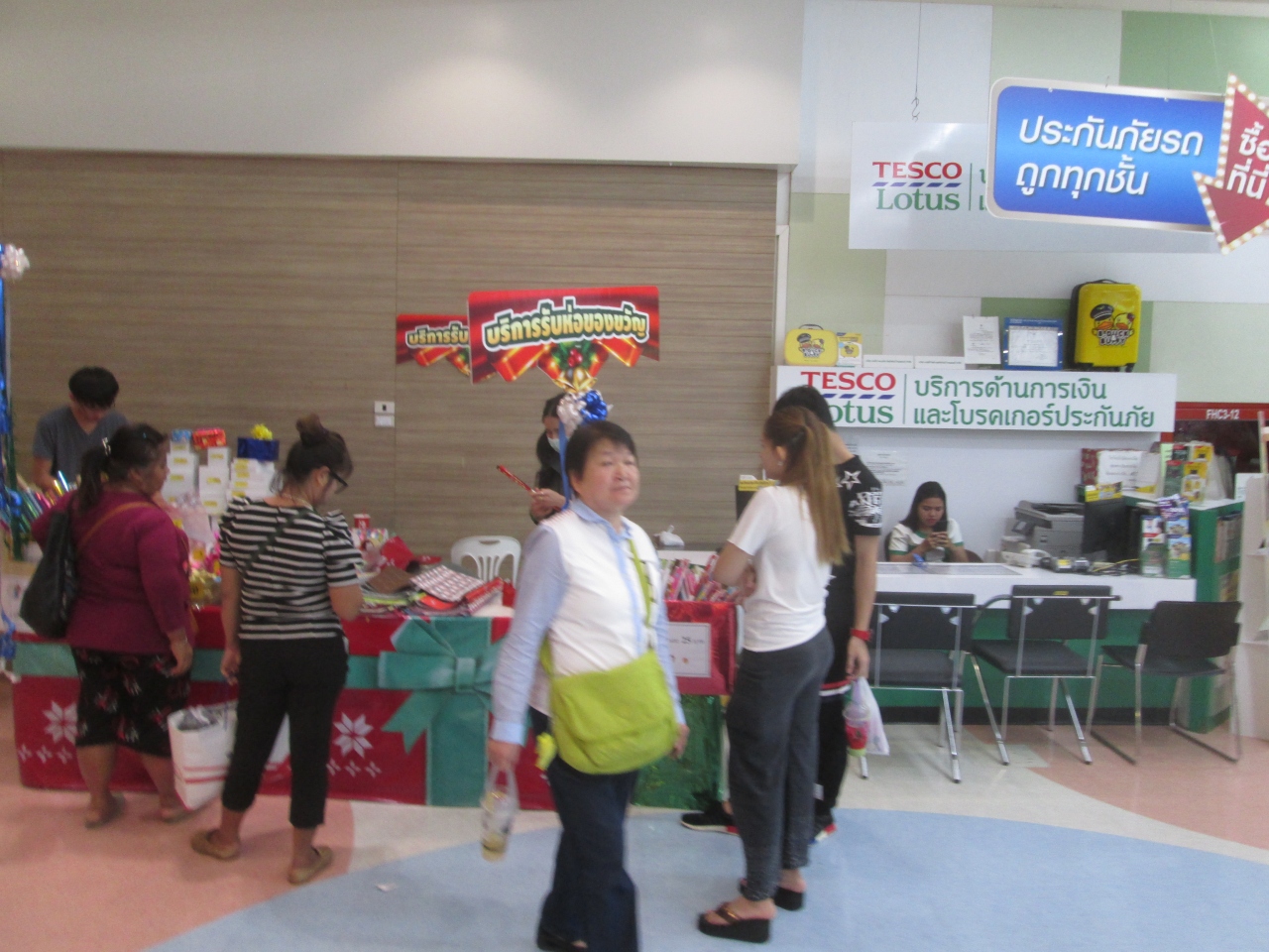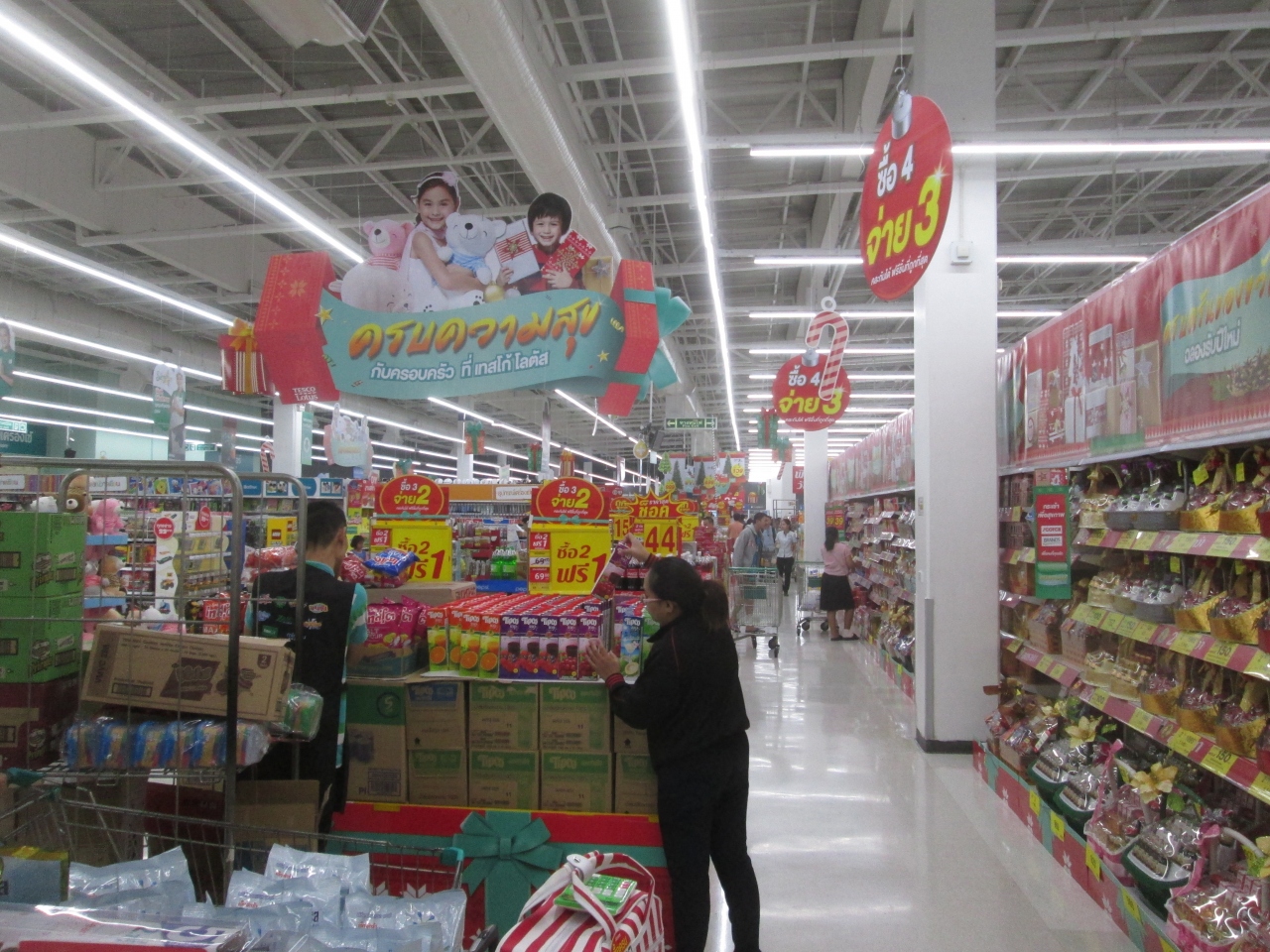 クリスマスの時期にテスコ ロータス(ラマ1世店)に訪問しました。昨年のクリスマスはプミポン国王逝去直後のため自粛モードでしたが、スーパー内に臨時の会場を設置し、イベントをしたり、店員がサンタクロースやサンタのコスチュームを着ていたのがおもしろかったです。