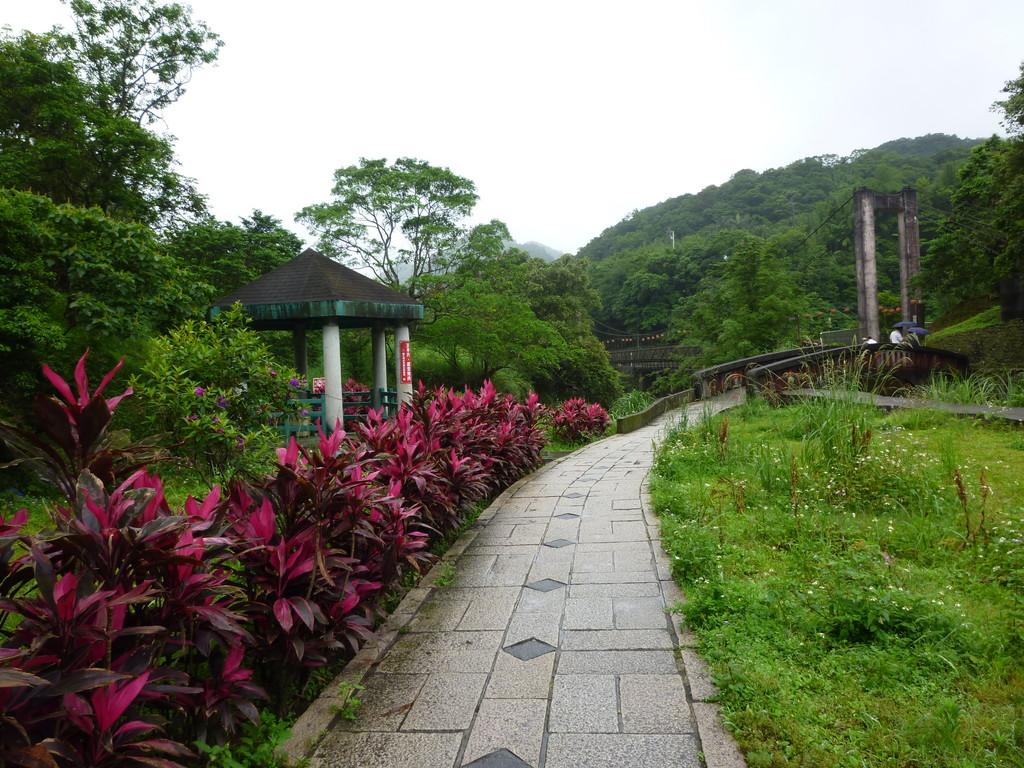 十分大瀑布は、十分風景特定区と言う公園の中にあり、公園内を楽しみながら行くことが出来ました。整備された公園を歩き、吊橋(観爆吊橋)を渡り、基隆河と平渓線の間に造られた石畳みの道を歩くと、十分瀑布に着きました。水量も多く、見事な滝でした。