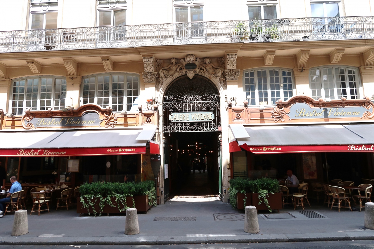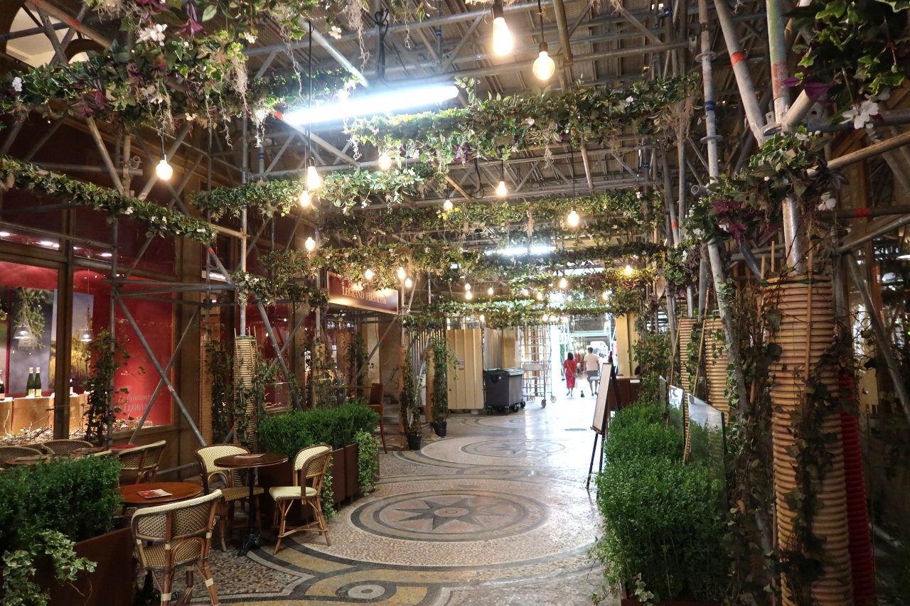 パリ散策中に、ギャラリー・ヴィヴィエンヌのアーチの入口が見えたので、美しいと言われるパリの代表的パッサージュではないかと、立ち寄りました。入口から覗きこんでみましたが、モザイク床は剥がれているし、全体に足場が組まれ、裸電球が下がっていて、中に入るのもためらわれる雰囲気で期待外れでした。ナントの豪華なパッサージュを見た後では、時が流れてしまった物哀しさを感じるほどでした。