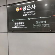 文字通り、奉恩寺に行くために利用した9号線にある駅です。駅を出てすぐのところに奉恩寺があります。太い道路の反対側にはCOEXモールがありました。奉恩寺とCOEXモールという見所が2つもある珍しい駅です。