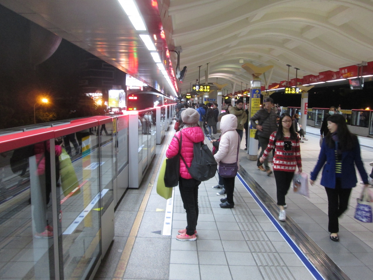 地下鉄の各駅には安全柵が設置され安全に配慮されています。時刻表はなくホーム上のテレビモニターに運行状況が表示されていましたが、東京、大阪のように事故による遅延はなく、また、台北滞在中に経験したことがありませんでした。日本の鉄道会社も見習って欲しいものです。