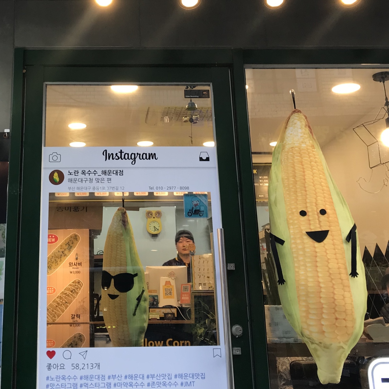 娘に頼んでインスタグラムを調べてもらったところ、韓国語で 노란옥수수 (ノランオッスス?黄色いとうもろこし)という名前のお店のようでした。