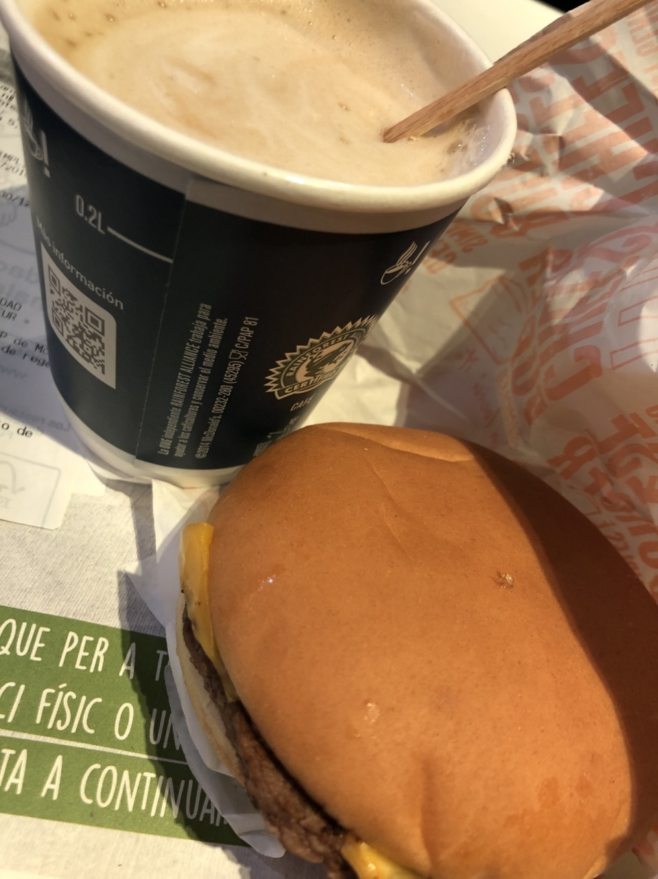 バルセロナ空港から5.9ユーロの空港バスに乗り終点がカタルーニャ広場でした。チケットはバス内で現金で買うか、空港の自販機でカード決済です。広場近くにマックがあり朝ごはん食べました。お客さんはスースケースを持ったトラベラーが多かったです。休憩してからタクシーでホテルへ向かいました。タクシーは常駐してました。帰りは同じ行程で、バスターミナルにある自販機でカードでチケットを買い空港へ向かいました。ターミナル1と2でバスが違うので注意です。