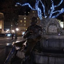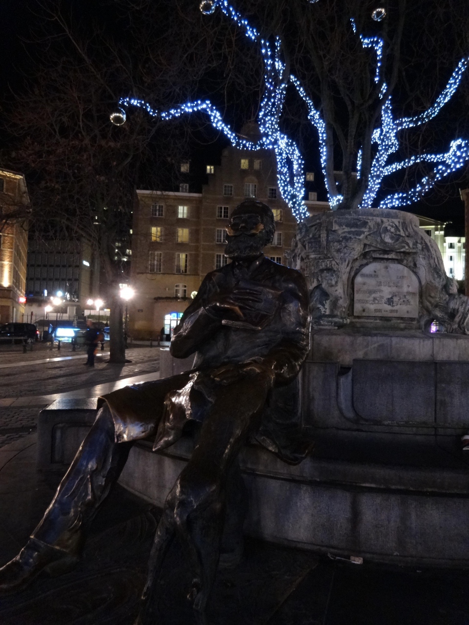 ブリュッセルを観光する際に、中央駅近くのノボテルに宿泊したのですが、ホテルの前にある広場(Place Espagne)にあった銅像が、Charles Buls Fountainというものでした。かつてブリュッセルの市長だった、Charles Bulsという男性の銅像なのだそうです。腰かけている像なのですが、その周りにも、座っている人がいました。