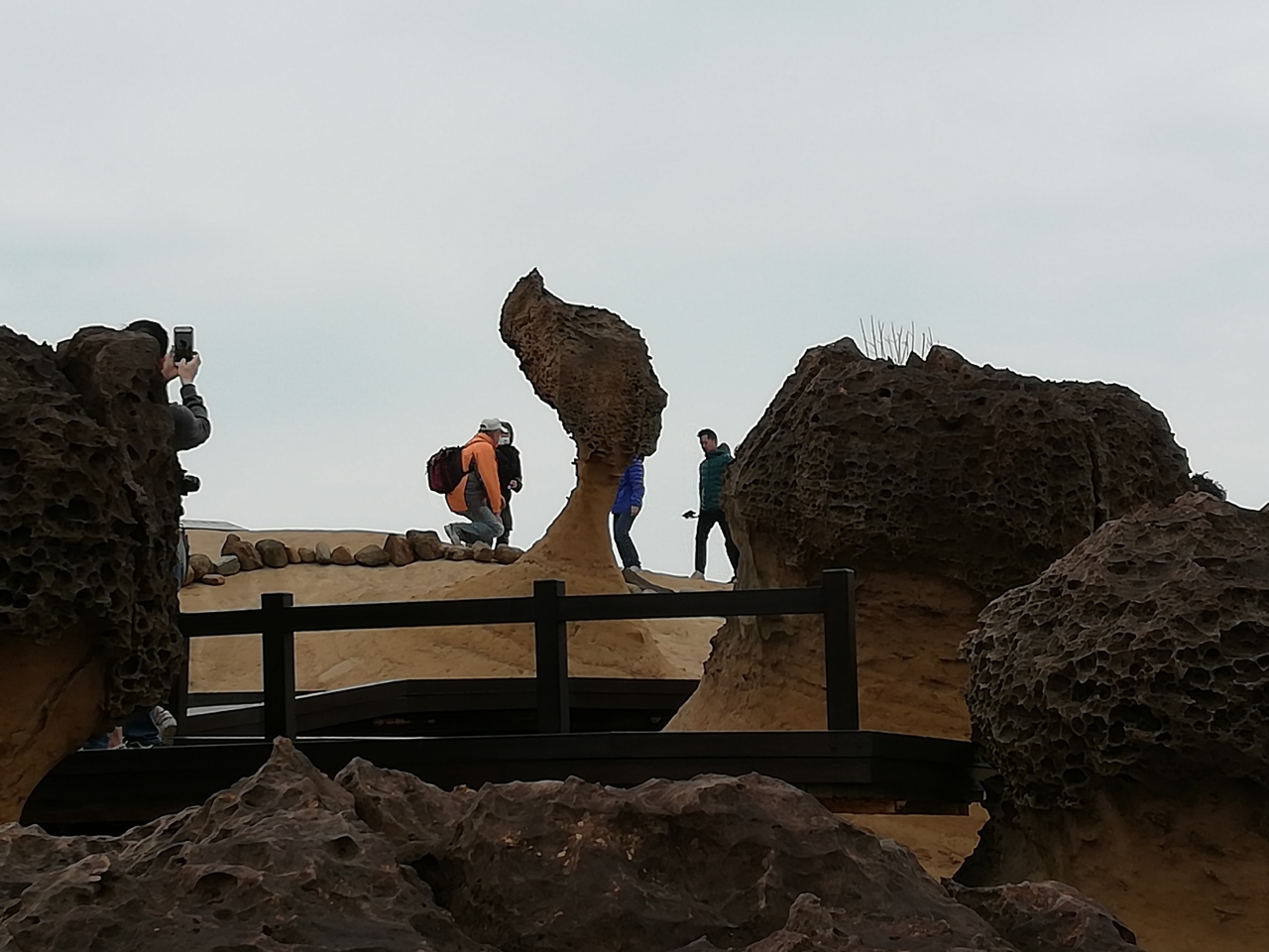 台湾の北海岸に位置する野柳公園。台北から車で1.5時間ほどですが、車以外ではアクセスが大変そう。ツアーで訪れる方が多そうです。公園内には奇岩が並び、それぞれ名前がついていてゆっくりあるいて2時間ほどで回れます。有名なクレオパトラの横顔とのツーショットは人気で行列ができていました。またこの公園は千葉県屛風ヶ浦を初めとして日本の6県と友好都市関係とのこと