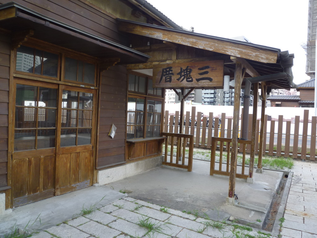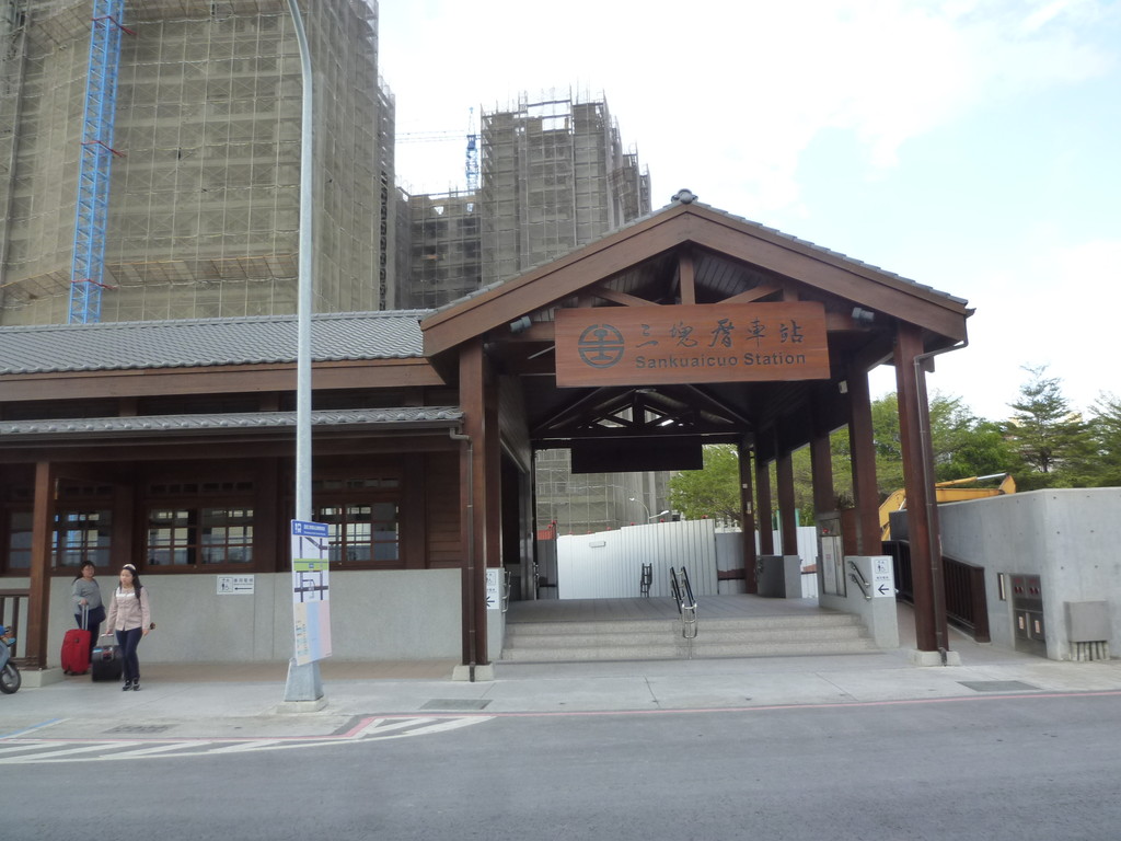 新設された台鉄の木造の駅舎、隣には同じく木製の旧三塊厝駅舎が二つ仲良く並んでいます。必見です。