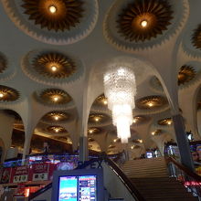 建物の中に入って、天井を見上げた瞬間に驚きました。豪華なシャンデリアと、ガウディの建物のような派手な装飾の天井は必見です。