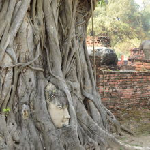 仏頭は木の低い位置に取り込まれていて、観光客の頭が高くならない様