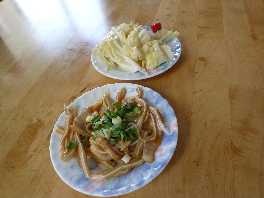 牛肉拉麺二人前とサイドメニューとして豚の耳、パーツアイを注文しました。