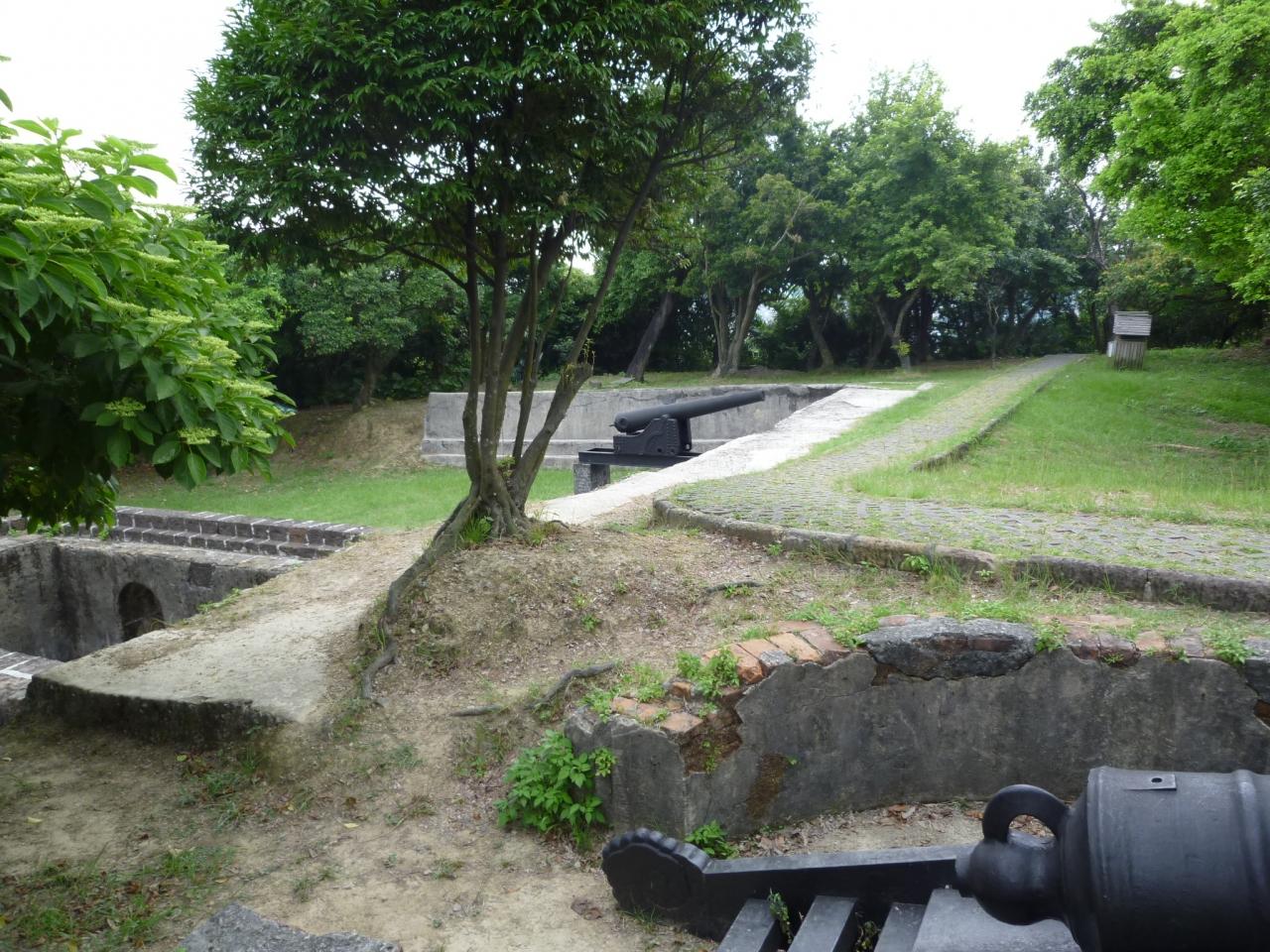 園内にはアヘン戦争の時期に外敵を防ぐために建設された城塞、砲台、
