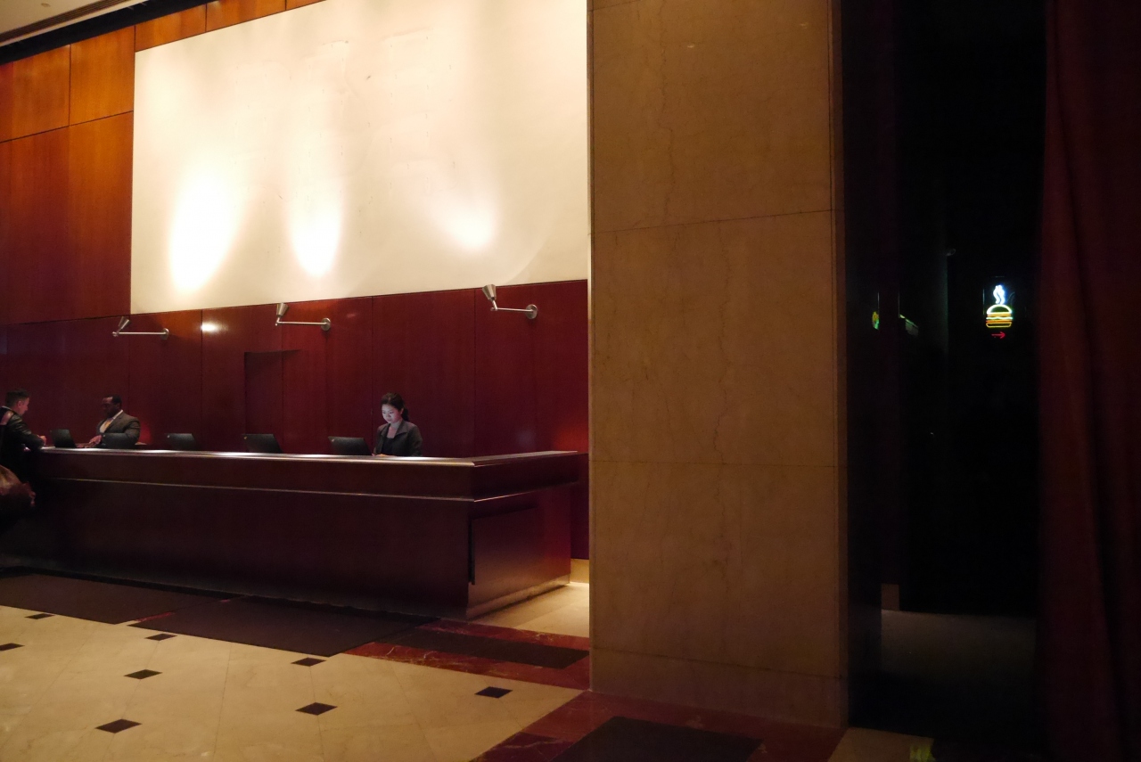 NY6番街と7番街の間、56thと57thの間にあるホテル、パーカーの中にあるハンバーガー屋さんです。フロントに向かって右側に細い通路があり、その奥、右側に店があります。