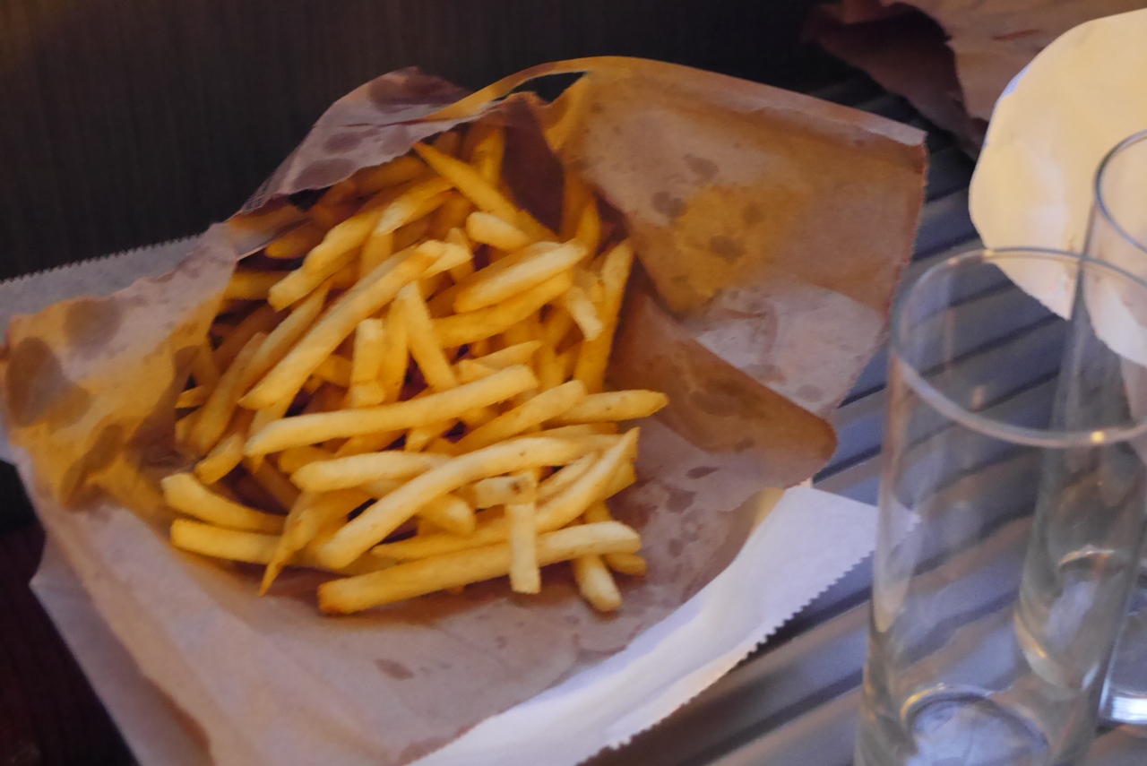 ハンバーガーとチーズバーガーこれにダブルが加わった4種類のメニューで、肉の焼き加減、レタスやトマトなどの中身、追加でベーコンが必要か、等を書き込みます。ビール、ワインもあるので夕食にも使えます。