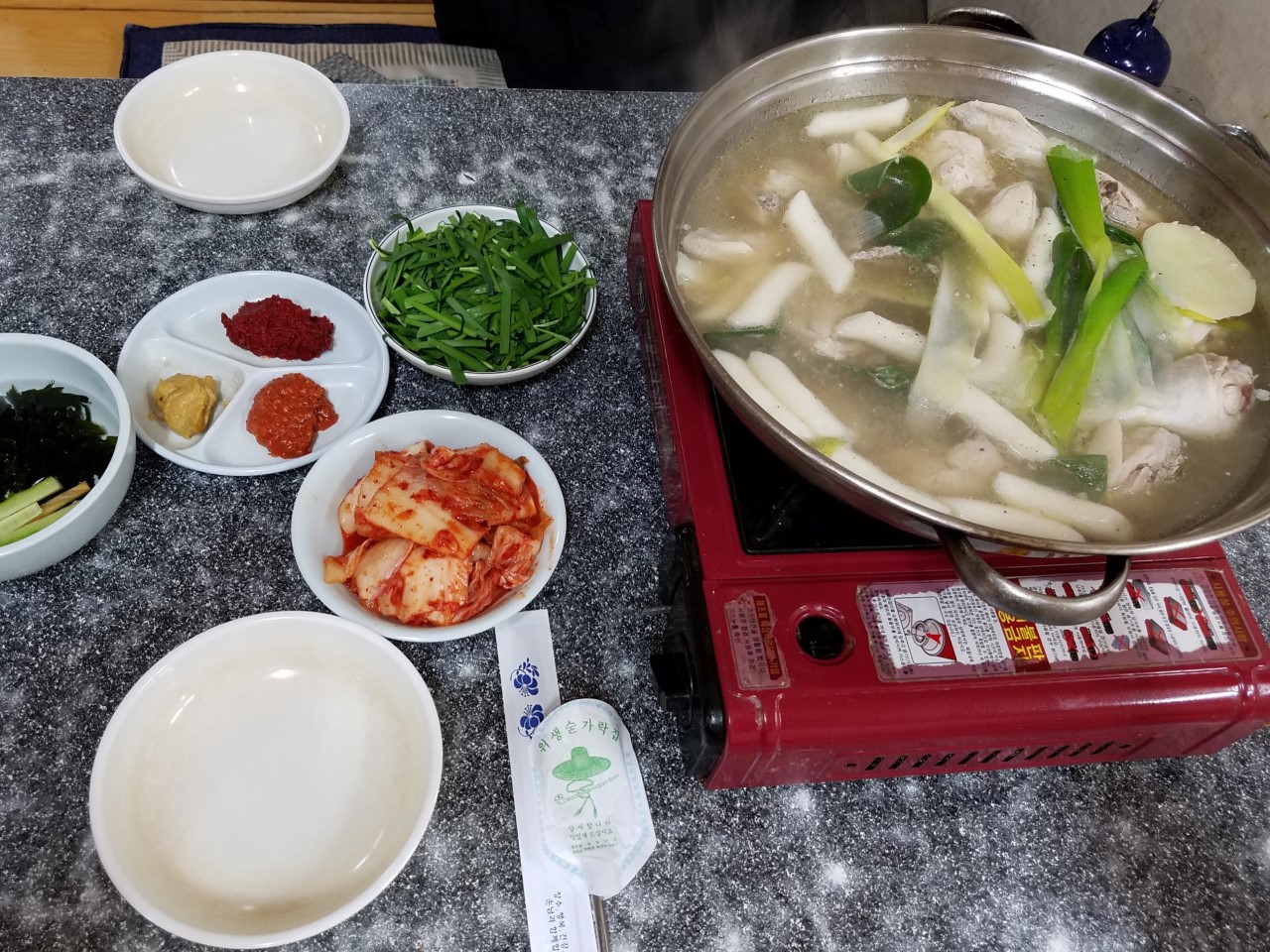 4号線の恵化駅から5分程の裏路地にあります。おばあちゃんがキリモリしているのでどことなく田舎を感じさせる雰囲気です。ランチの時間を外して14時前に行きました。タッカンマリ2人前とコーラ×2と追加のしめでククスを1人前を頂きました。味は優しいお味でまた、食べに行きたいです。自分で言ってドリンク持って来ました。←おばあちゃんも持って来てくれますが、自分で行った方が早いです(笑)帰りの会計の際に1人でもククスとかなら食べれるかいいか聞いてOKを貰ったのですが、後日、1人でお店に行ったらNGだったので2人以上での来店でないと厳しそうです。