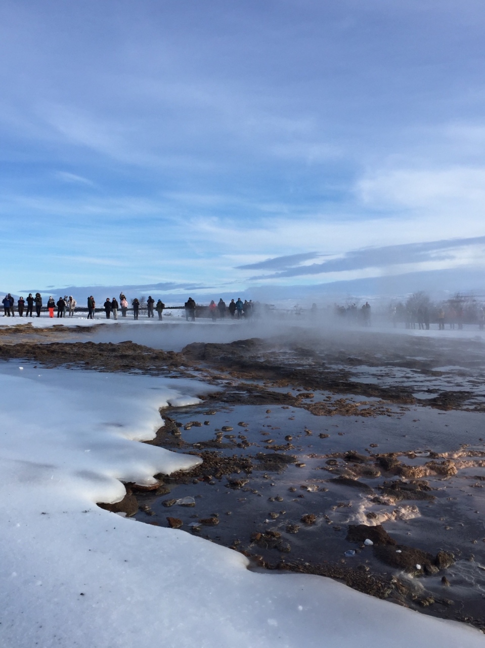 山間の中に蒸気が立ち上がっているところが見えたと思ったらゲイシールでした。大小さまざまな間欠泉があり、一番大きなところでは10分おきくらいに吹き上がっています。写真が撮りたい方は長い時間待っていないとその瞬間をとるのは難しいです。