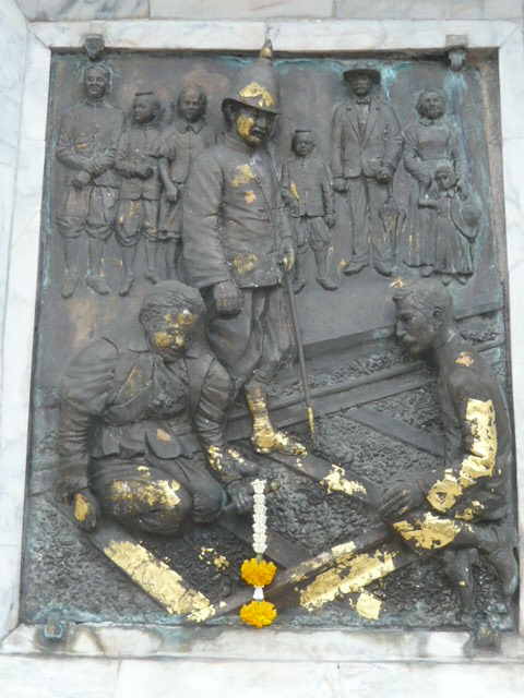 その偉業を顕彰するための記念碑がファランポーン駅に置かれています。