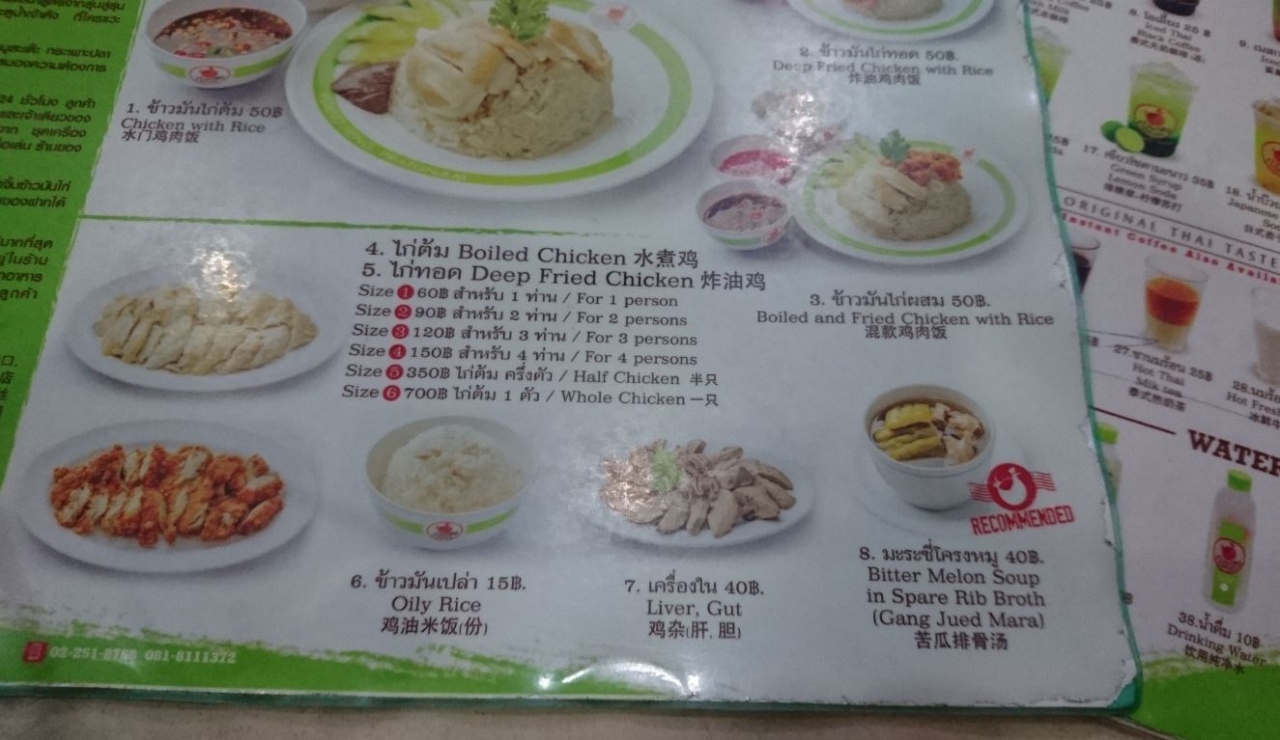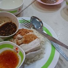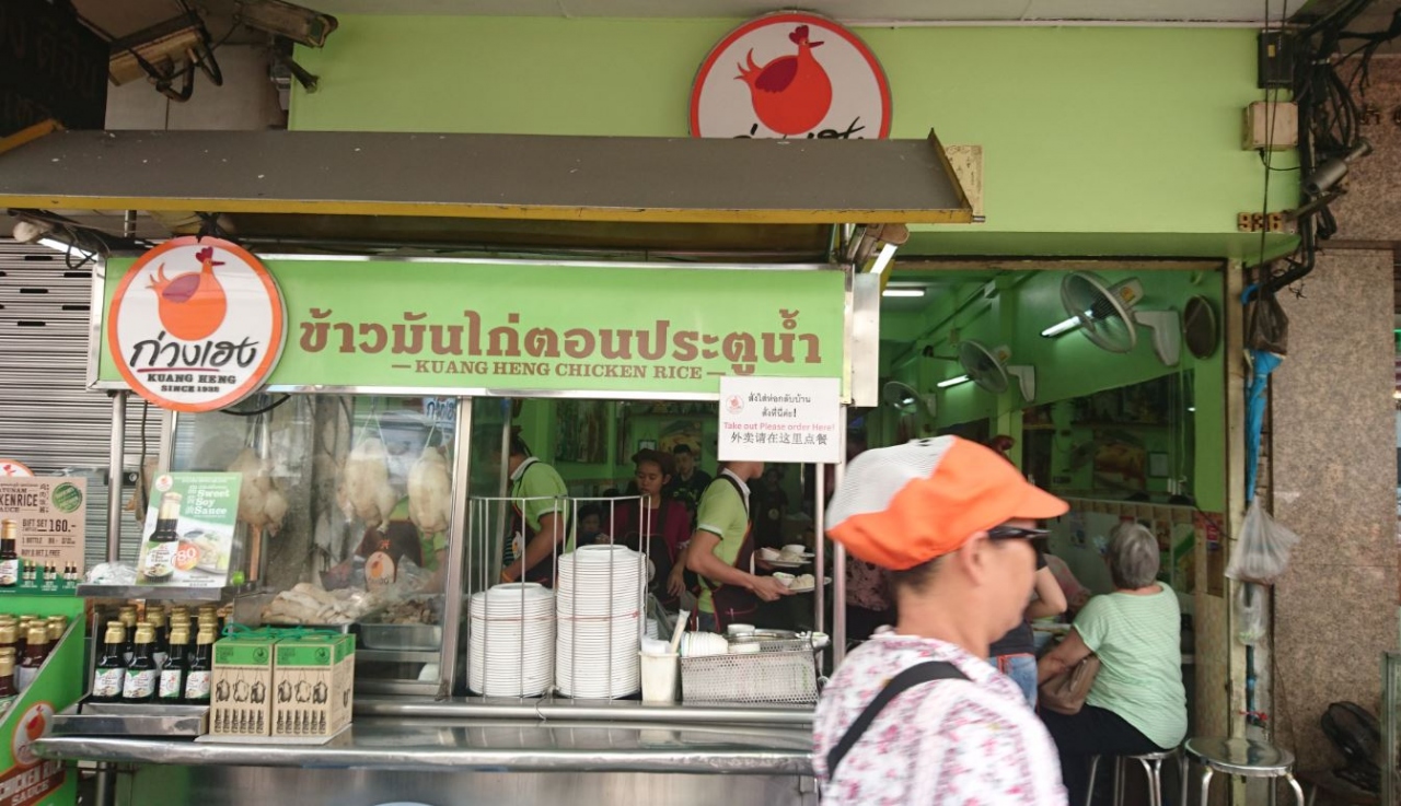 通称”ミドリのカオマンガイ”Kuang Heng Pratunam Chicken & Rice 。ここは列に並んで席を待つシステムです。味は至って普通ですがコスパがあり人気の様です。フライドとボイルのチキンのハーフ&ハーフがお勧めです。