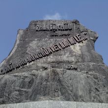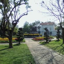 ファン ボイ チャウ記念館には何度か訪れたことがあるので、今回は彼の“頭像”を見に行ってみました。場所は新市街側のチャンティエン橋のたもと。サイゴンモリンホテルの向かいです。花壇のある小さな公園の中央に“鎮座”しています。銅製で高さ4.5m、重量9トンとなかなかの大きさです。裏手に回ると彼の詩の有名な一節が書かれています。