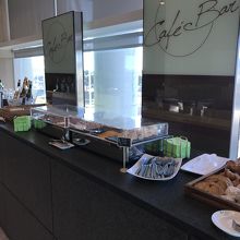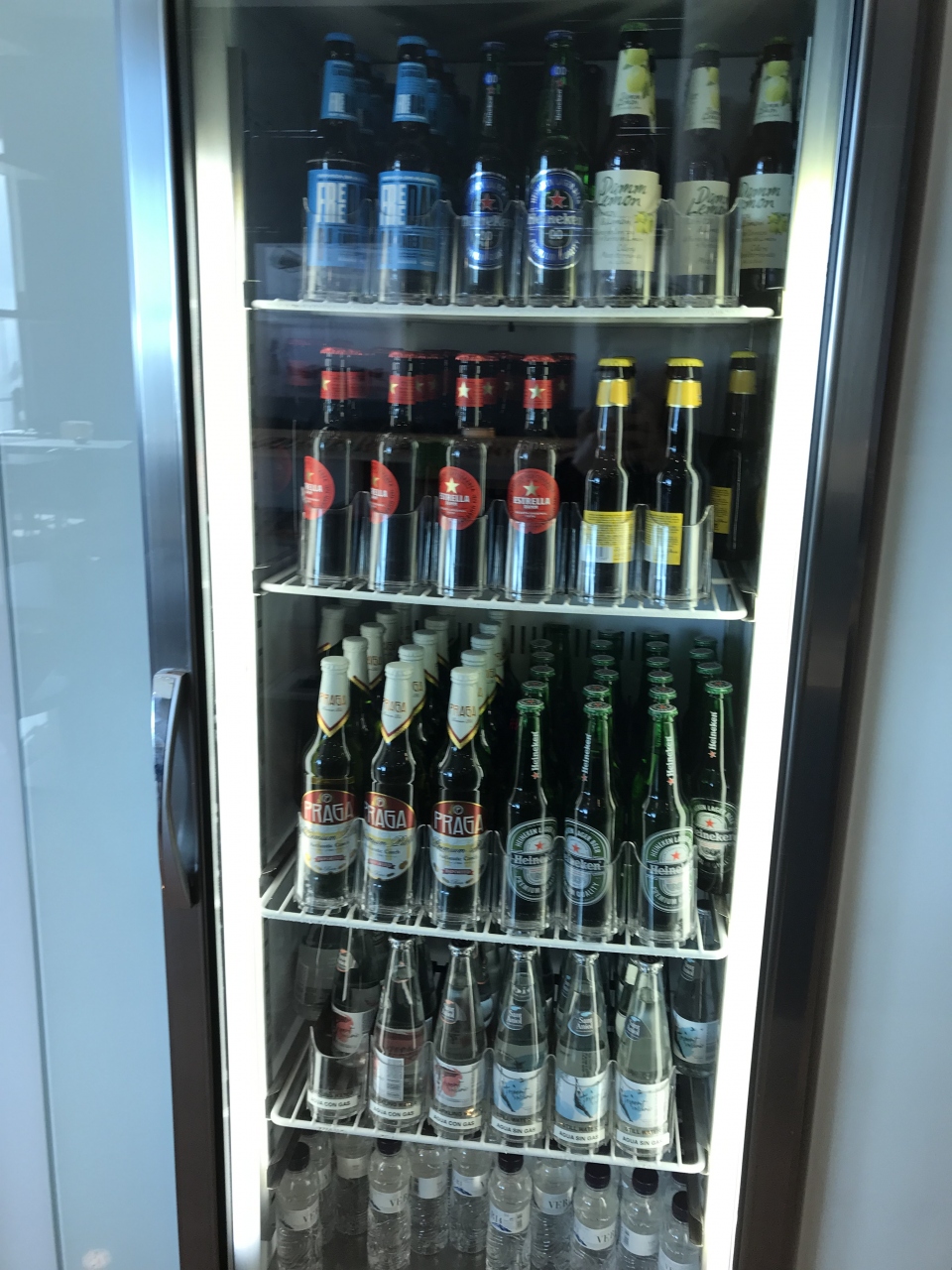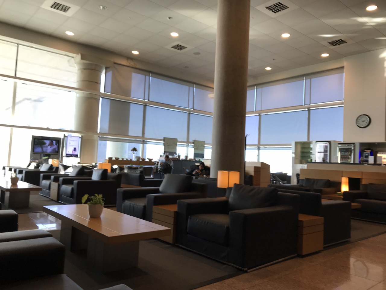 場所は、ゲートA2の前です。Aゲートをひたすら歩いた突き当たりにあります。それほど大きなラウンジではありませんが、ドリンクの種類は豊富でした。食事はホットミールは無く、サンドイッチ、パン、ヨーグルトなどの軽食がありました。生ハムもあり、充分な品揃えだと思いました。充電スペースは、ほとんどなかったです。空いていたので、寛げました。